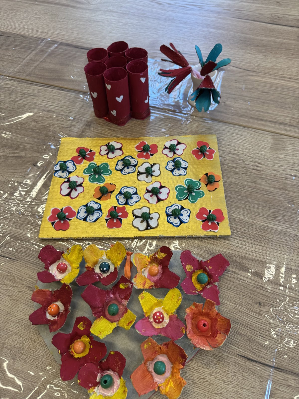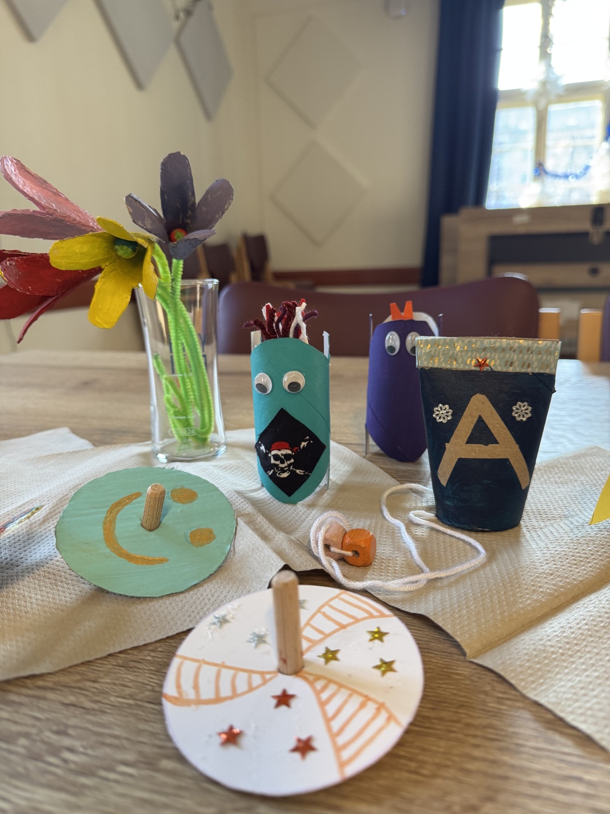 Die Rucksack Eltern und Rucksack Kinder haben gemeinsam an einem Upcycling-Workshop mit Curioso im Stadtteilzentrum Adalbertstraße teilgenommen. Mit viel Kreativität und Wissen gestalteten sie aus Materialien wie Klopapierrollen und Eierkartons wunderschöne neue Kunstwerke.