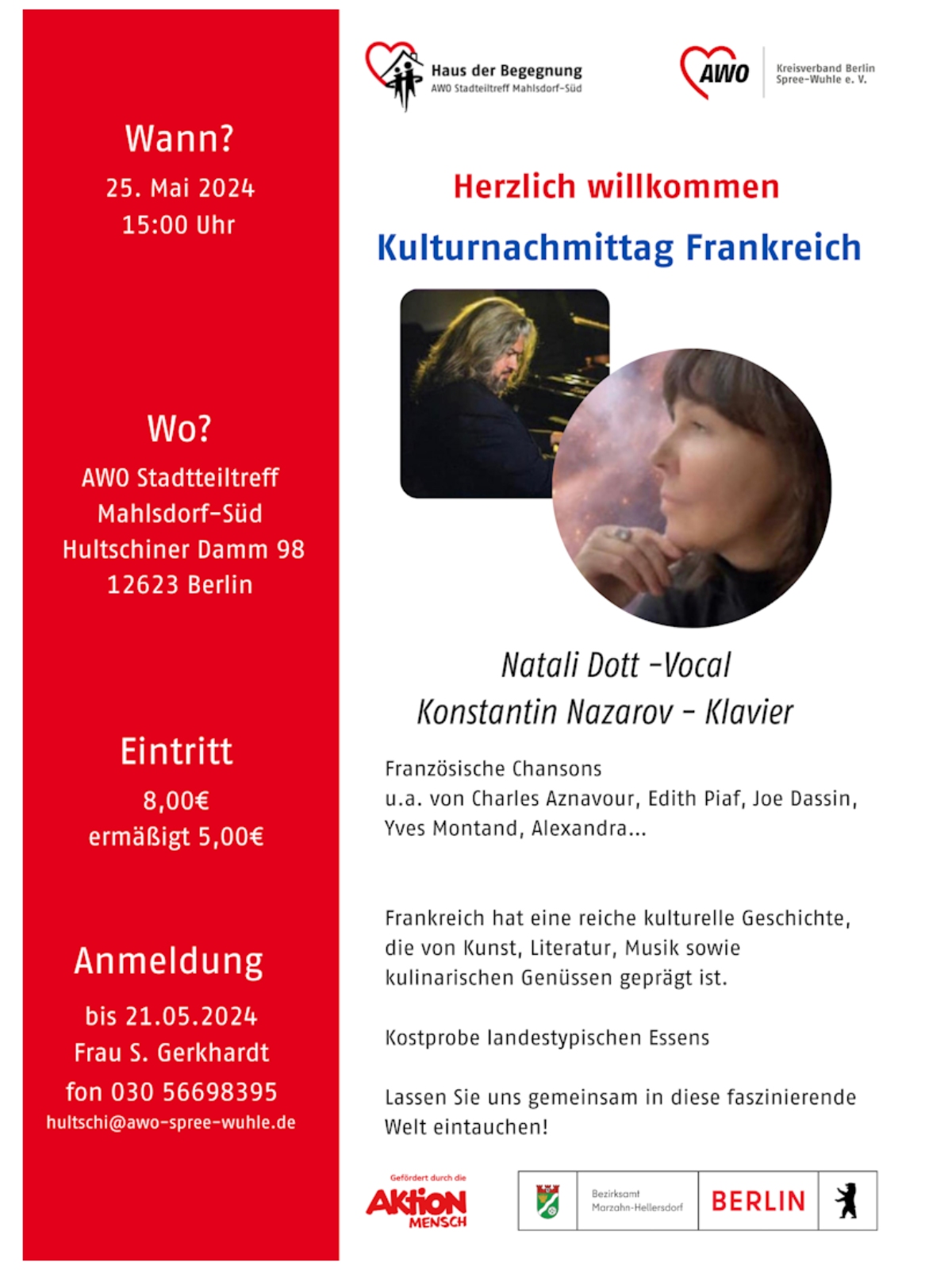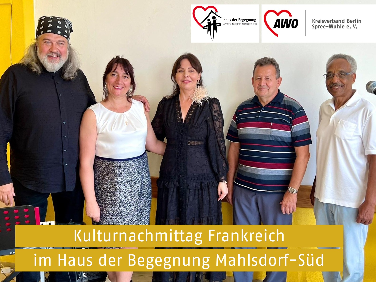 Der Kulturnachmittag im AWO-Stadtteiltreff Mahlsdorf-Süd im Mai entführte die Besucher*innen nach Frankreich. Die Kulturnachmittage sind Teil des von der Aktion Mensch geförderten Projekts „Kulturelle Begegnung durch Vielfalt erlebbar machen“.