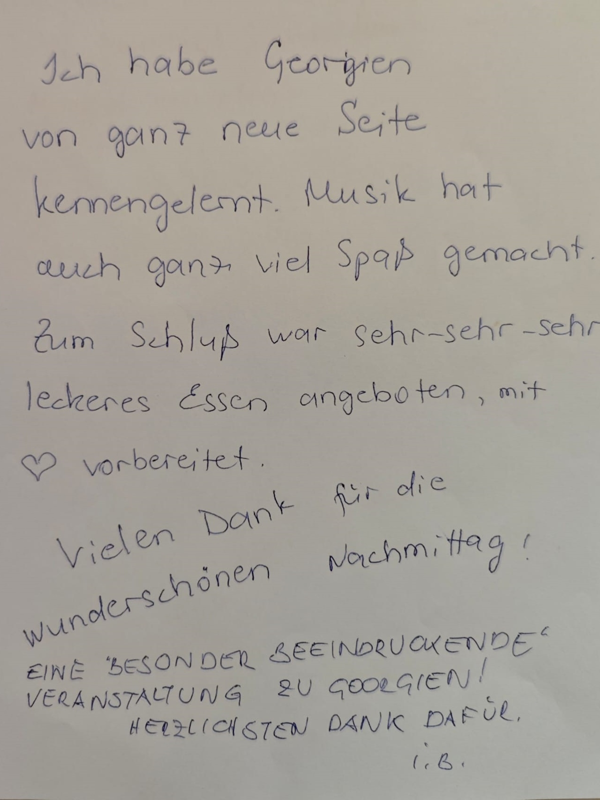 Ein besonderer Dank gilt Sandra für ihre Unterstützung und dafür, dass sie diese wunderbare Veranstaltung ermöglicht hat. Ihre Ausstrahlung und Liebe zu Georgien verwandelten den Nachmittag in ein echtes Fest, bei dem die Gäste sangen und tanzten. Die Atmosphäre war voller Freude und Gemeinschaft.
