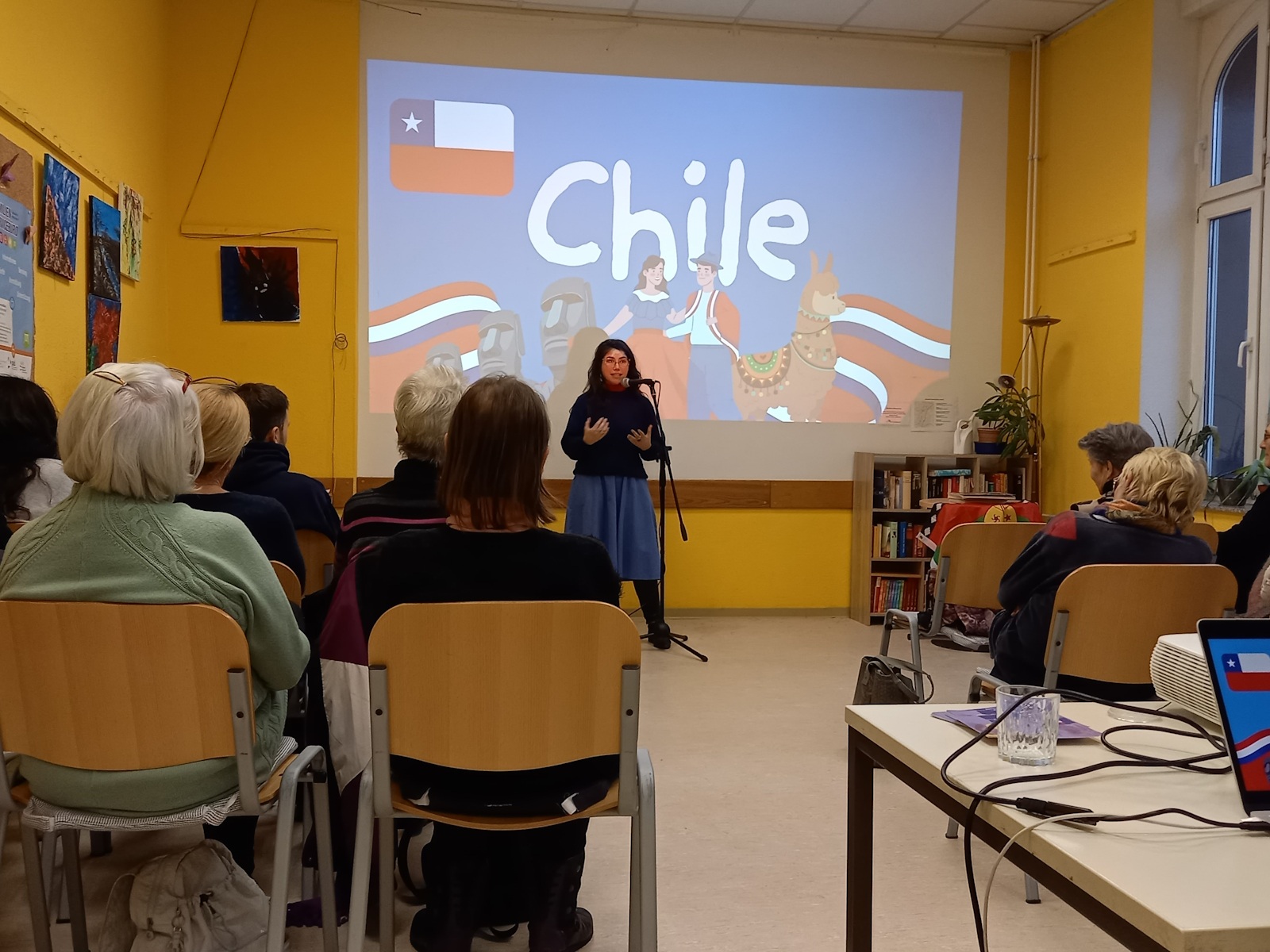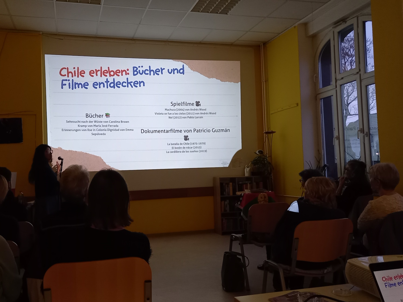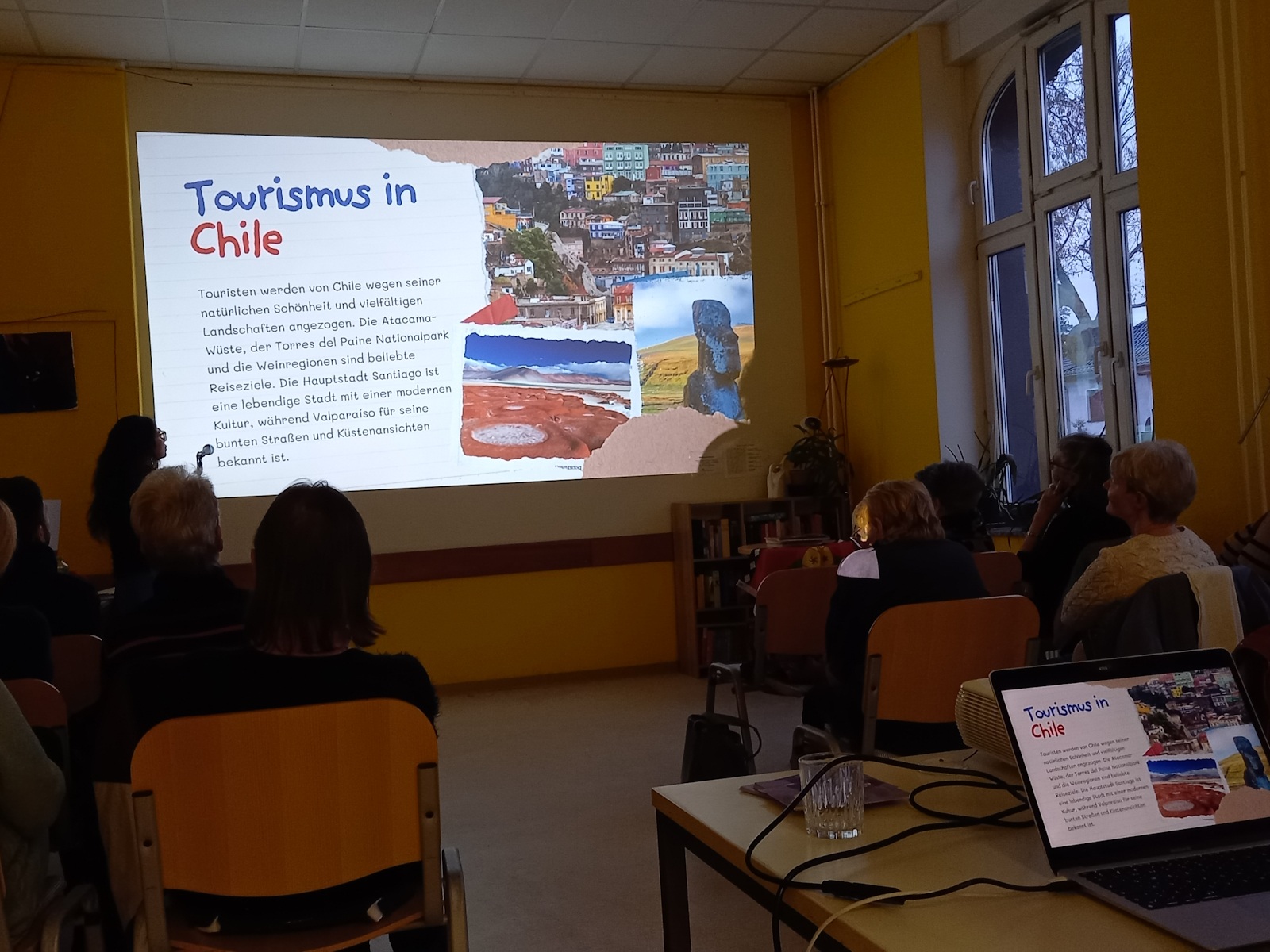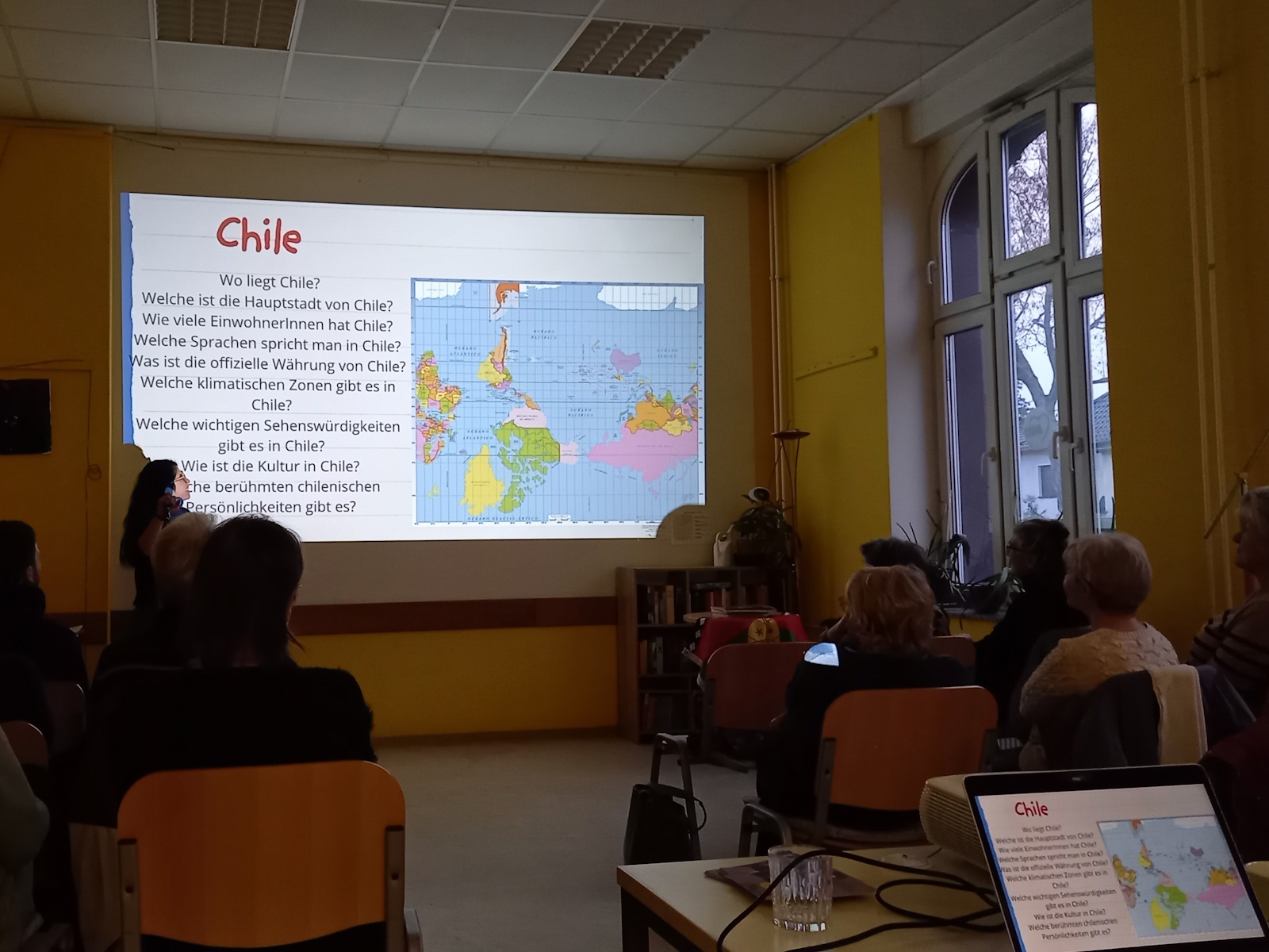 Nach den Begrüßungen durch Dr. Sufian Weise und Natalya Sudnikovic präsentierte Florencia von MaMis en Movimiento e.V. einen Vortrag über Land, Leute und Kultur Chiles.