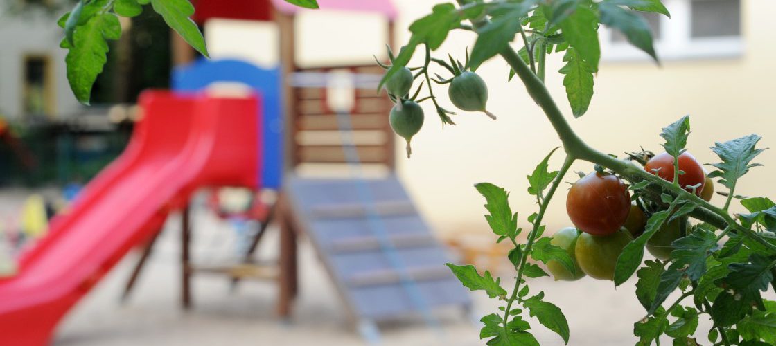 Wir bieten in unserer Kita eine ausgewogene Ernährung für die optimale physische und psychische Entwicklung der Kinder. In unserer hauseigenen Küche, wird täglich frisch nach den Standards der Deutschen Gesellschaft für Ernährung, gekocht. Unsere Kinder werden an der Speiseplanung beteiligt. Die Kinder erhalten jeden Vormittag ein Obst- und Gemüsefrühstück, welches sie sich selbst zubereiten. Während des ganzen Tages stehen den Kindern ungesüßter Tee und Wasser zur Verfügung. Täglich nutzen wir unseren großzügigen Garten zum Spielen, Bewegen, Toben, Klettern, Schaukeln.