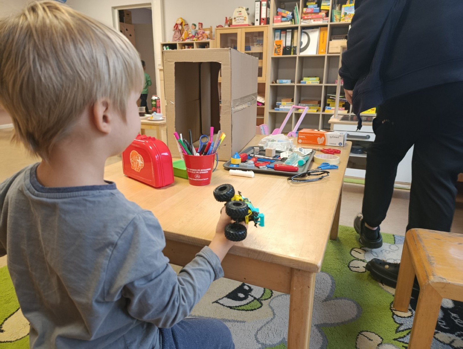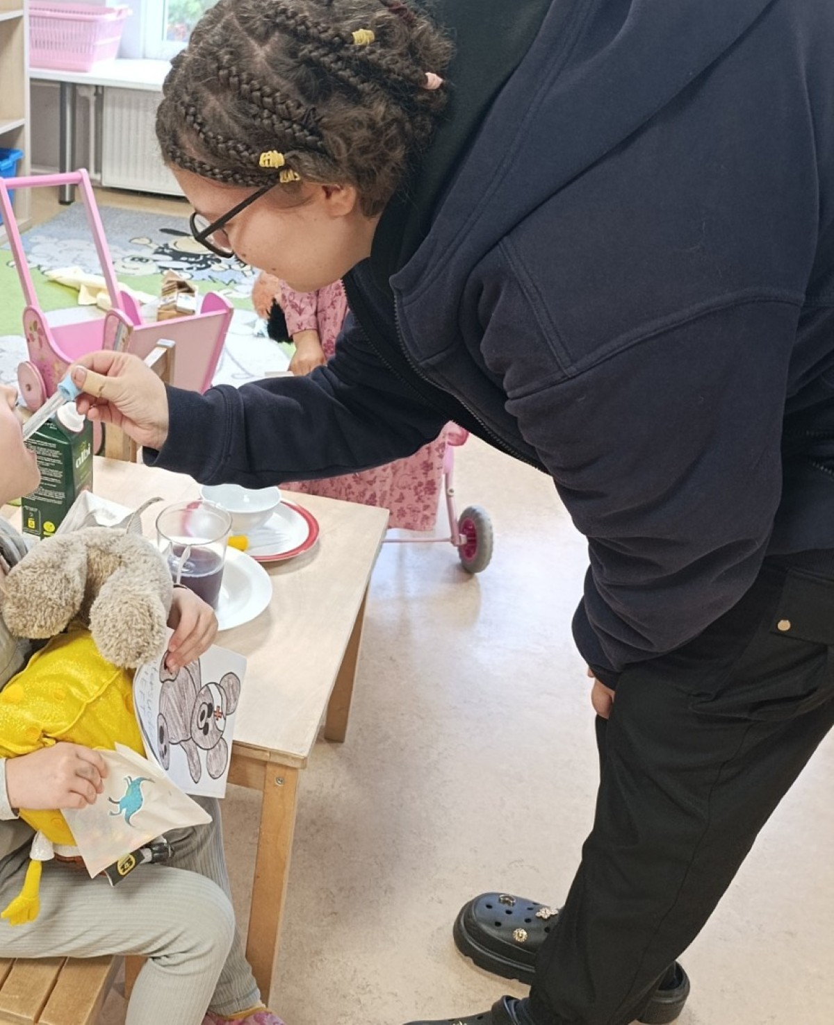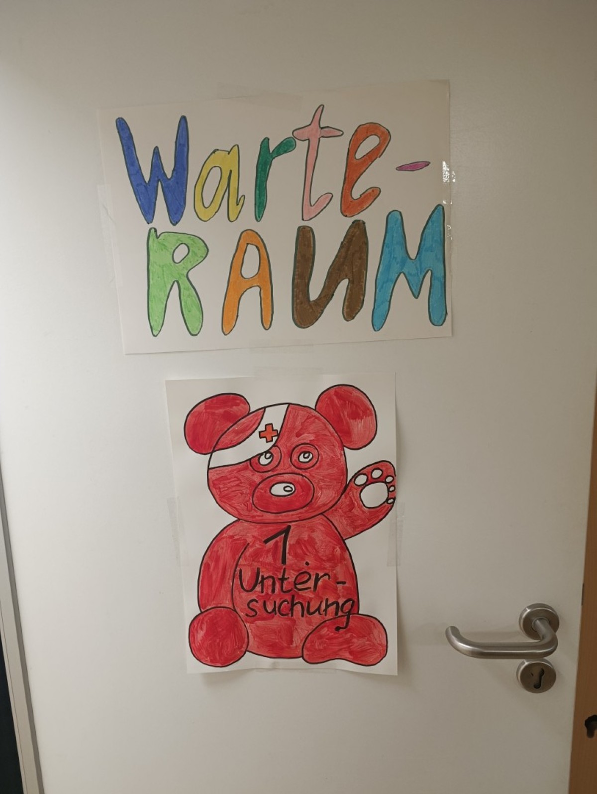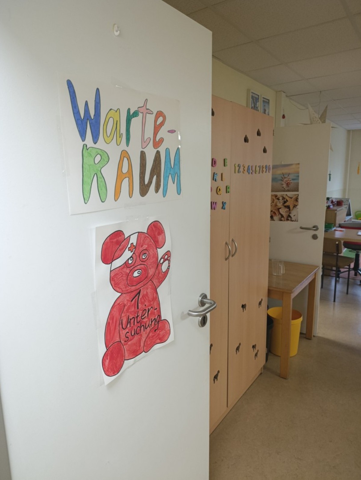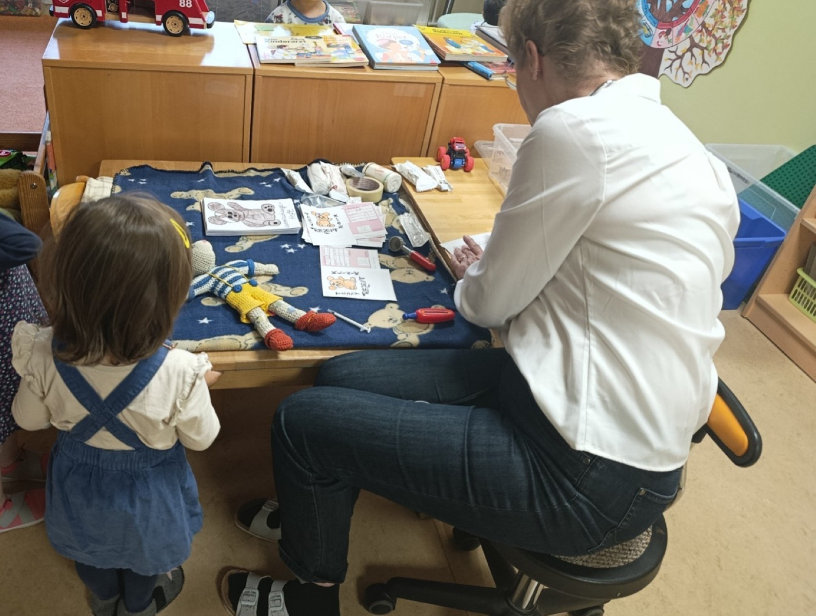 Zum Abschluss öffnete unsere Teddy-Klinik ihre Türen. Kuscheltiere wurden untersucht, gewogen und verarztet – inklusive Rezept für Smarties & Saft aus der „Apotheke“. 🧃🍬