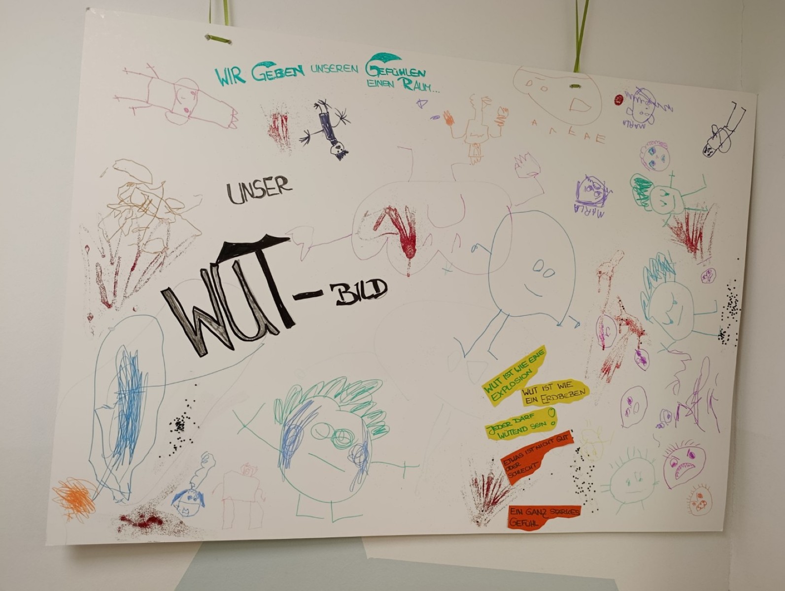 Auch Gefühle spielten eine große Rolle: Was macht uns wütend, traurig oder glücklich? Beim gemeinsamen „Wut-Bild“ konnten alle ihre Emotionen kreativ ausdrücken. 🎨
