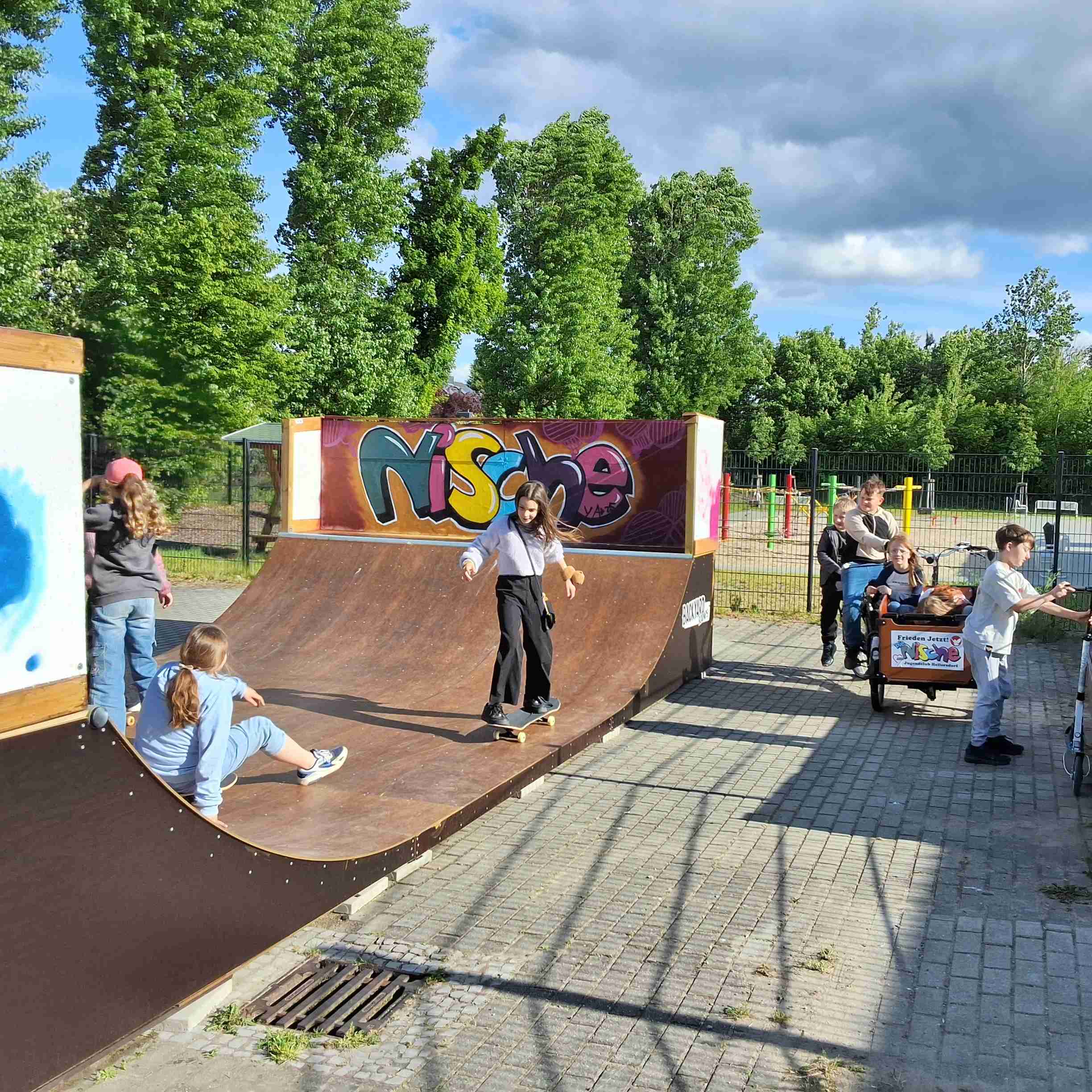 die neue Miniramp war auch im Mai der Mittelpunkt des Lebens im Jugendclub, die Ramp wurde weiter kreativ gestaltet und es wurde fleißig trainiert. wer Sport treibt bekommt Hunger, in der Küche werden leckere kleine Snacks, Plinsen und Toast, zubereitet. für Nische Aktivisten gibt es jetzt ein VIP Hoodie …