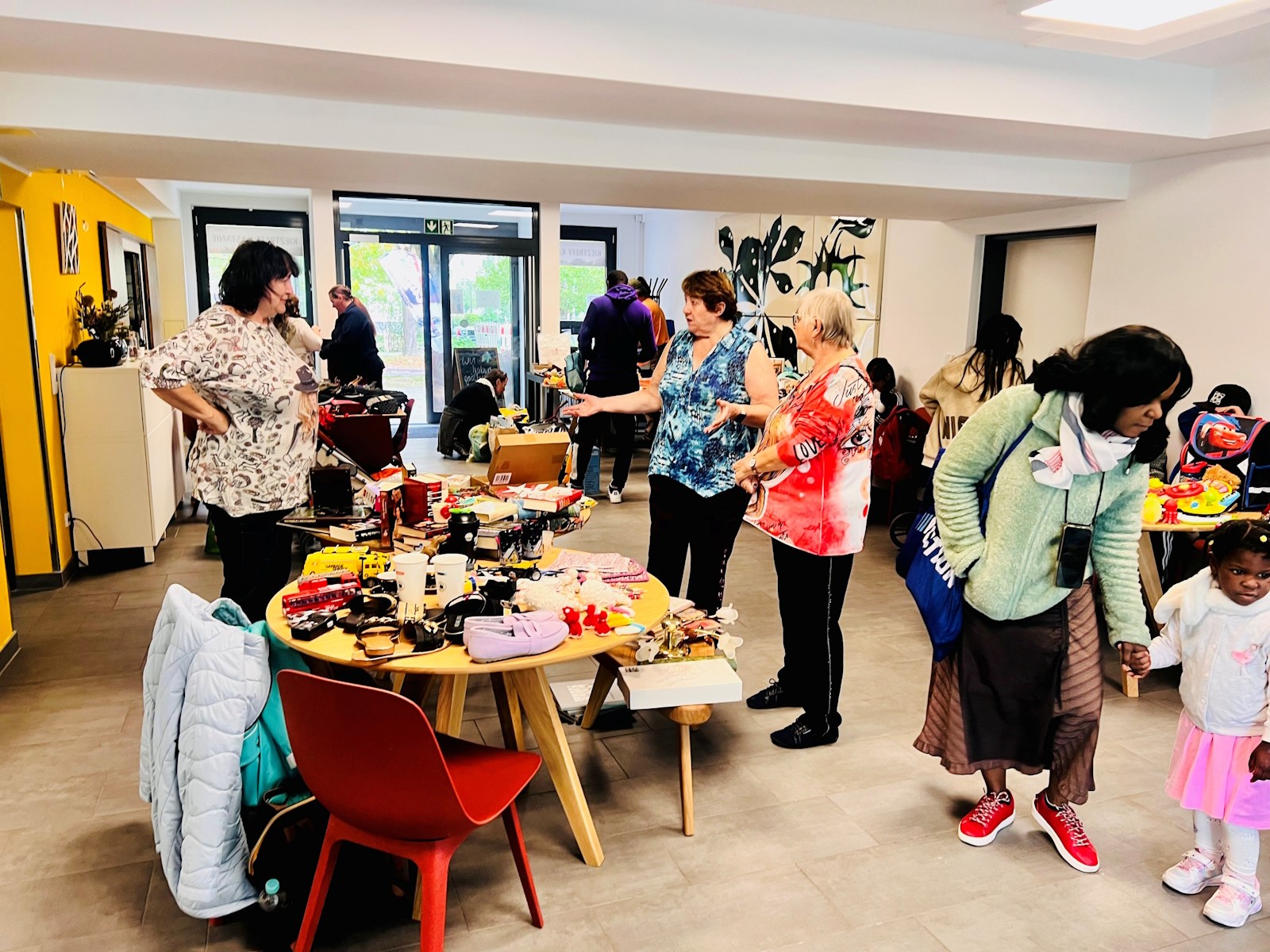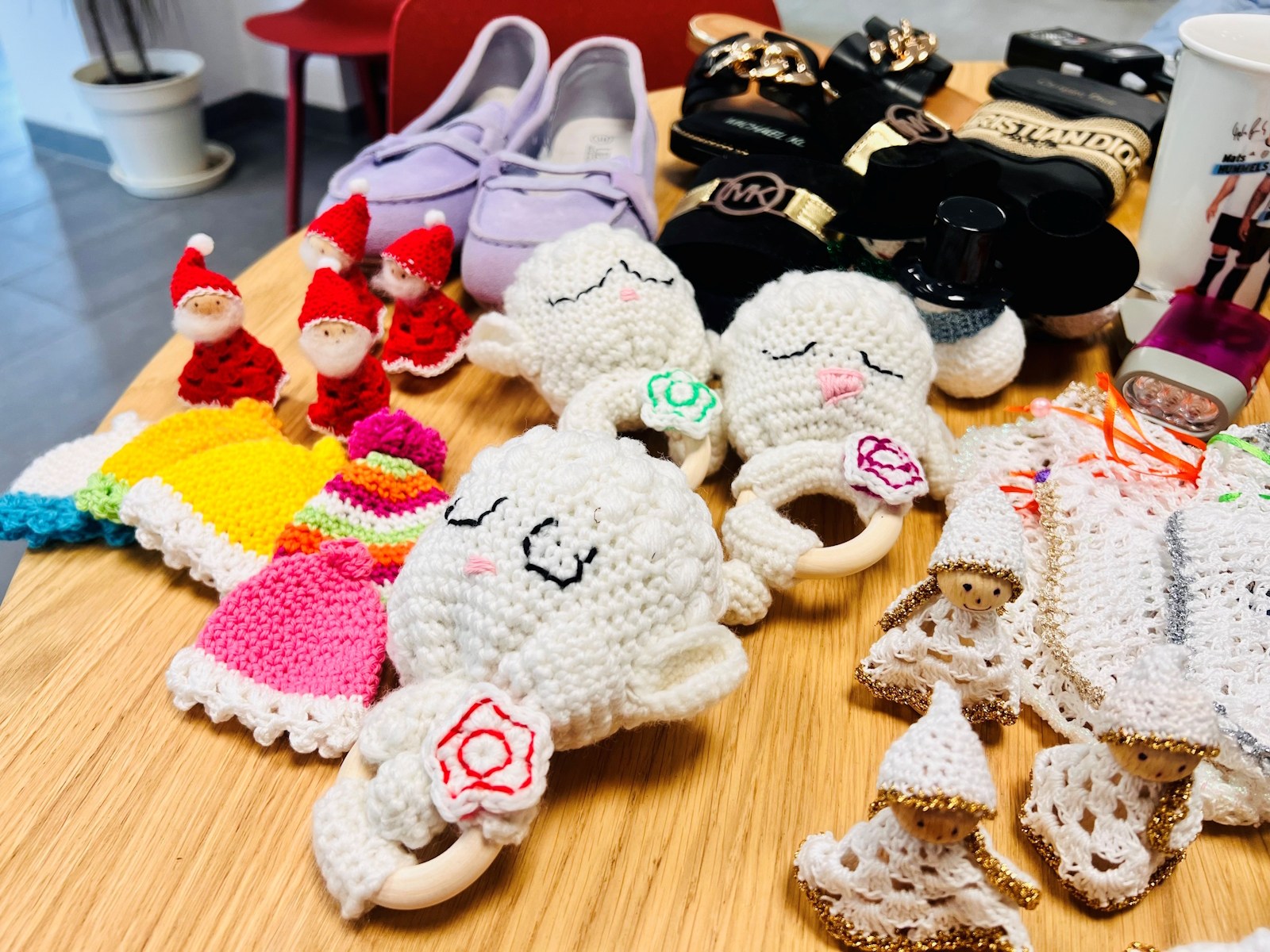 Auf dem Flohmarkt im Haus Kastanie bot die Handarbeitsgruppe aus dem Stadtteiltreff viele bunte, wollige Kreationen an.