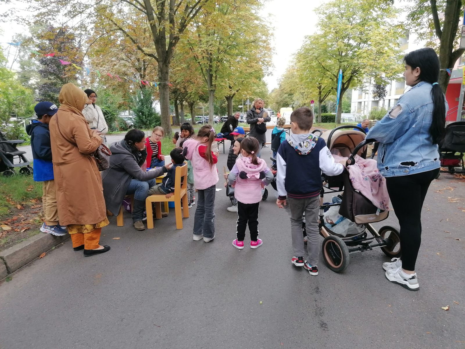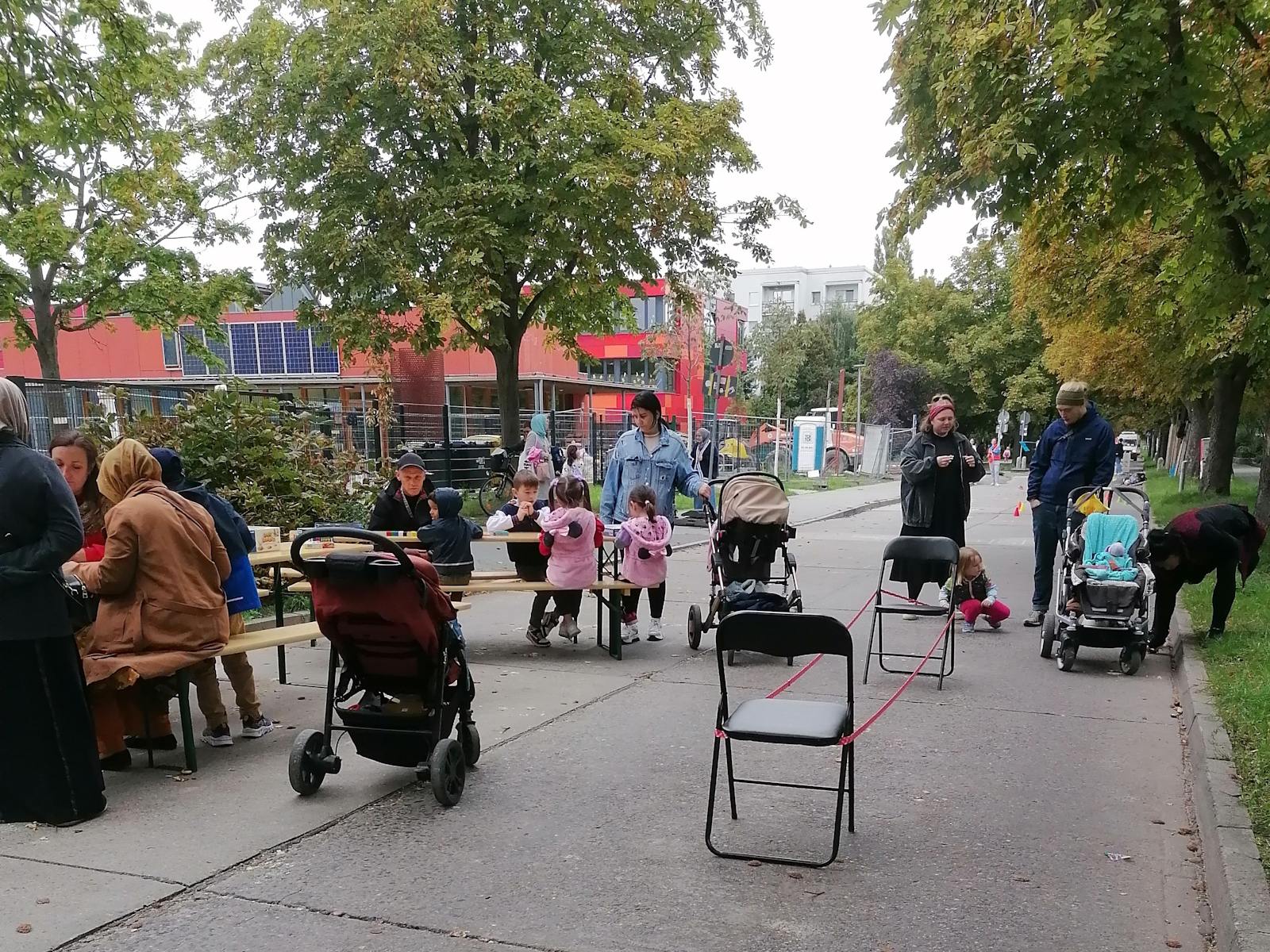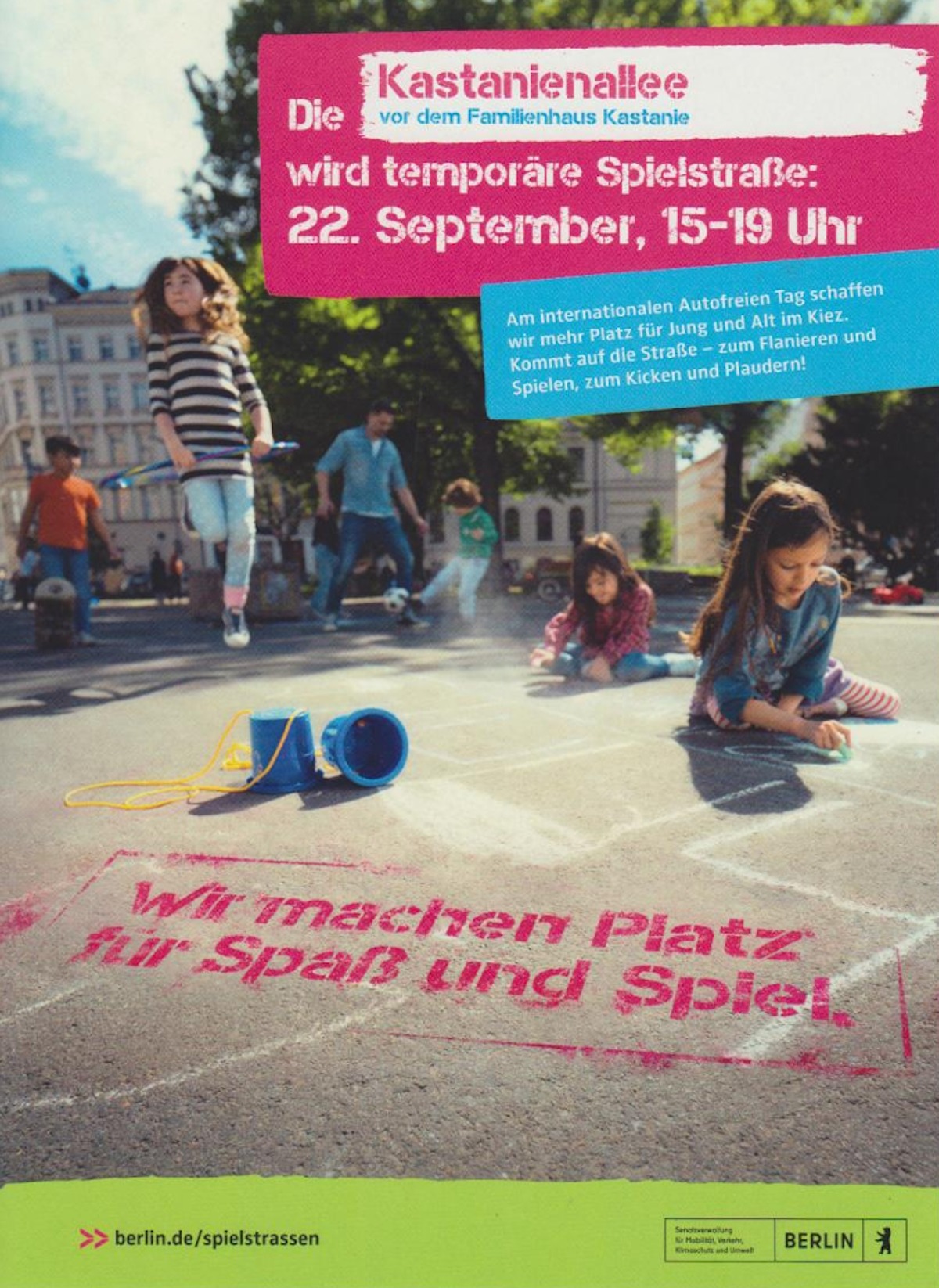 Am Internationalen Autofreien Tag eroberten die jungen Familien aus der Kastanie die Straße vorm Haus und machten sie zu einer temporären Spielstraße.