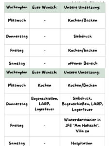 - wir haben eine gemeinsame Wochenplanung gestartet – ein Wochenplan dokumentiert die Wünsche der Besucher*innen und deren Umsetzung