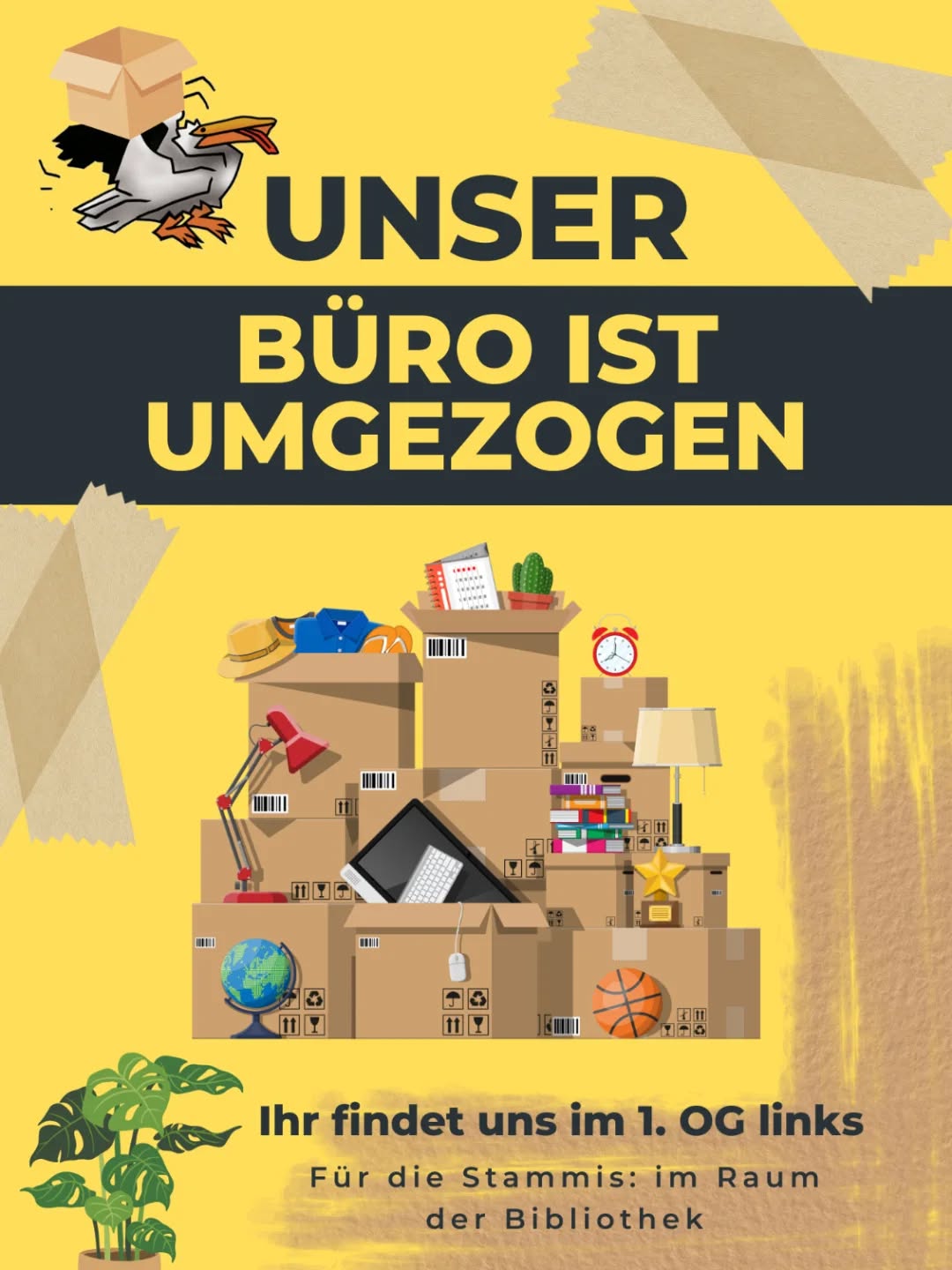 - unser Büro ist in die 1. Etage gezogen, dafür gibt es im EG jetzt einen neuen Chillraum und einen Raum als Spielzeugausleihe („Pfandleihe“)