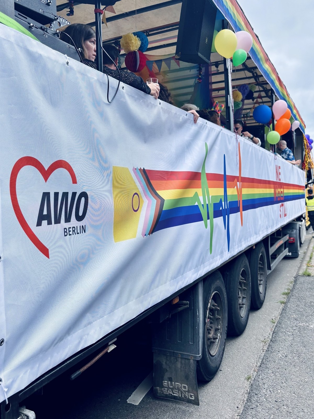Der AWO Kreisverband Berlin Spree-Wuhle war wie in den letzten Jahren mit einem eigenen Truck mitten im bunten Demonstrationszug.