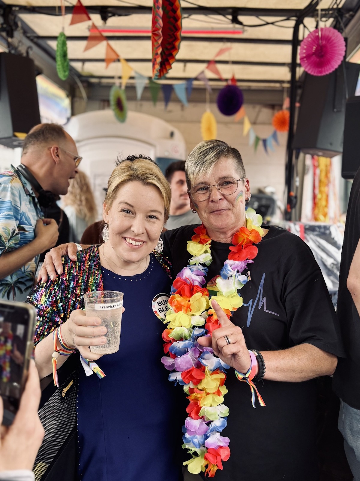 Gemeinsam mit Hunderttausenden feierten die Menschen auf dem AWO-Truck und die verantwortlichen Vertreter*innen der AWO Spree-Wuhle konnten wieder viel politische Prominenz begrüßen. Der Regierende Bürgermeister Kai Wegener und Bildungsenatorin Katharina Günther-Wünsch waren auf dem Wagen zu Gast, genauso wie die Bürgermeisterin Franziska Giffey und Senatorin Cansel Kiziltepe.