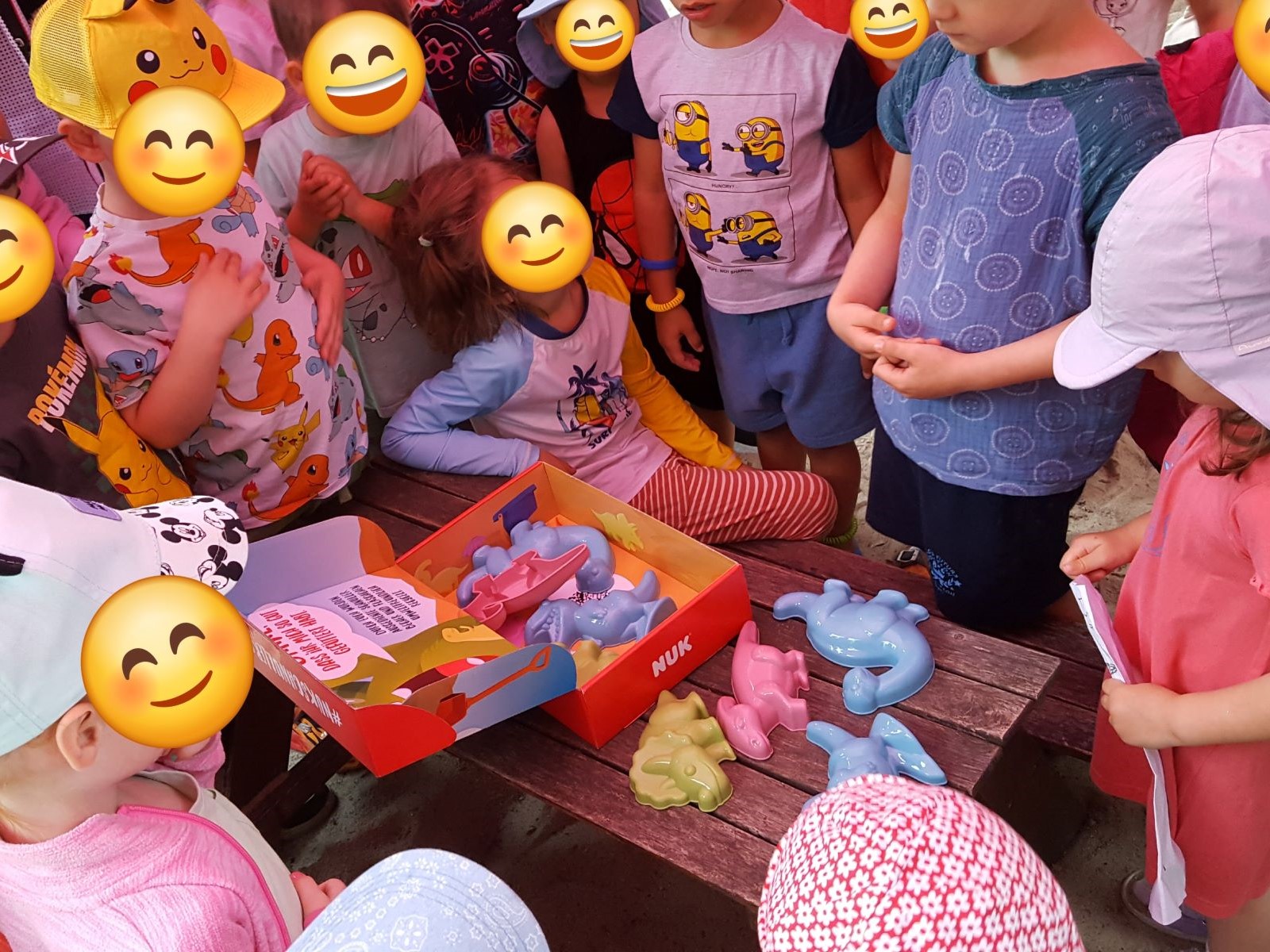 Vor einigen Tagen kam nun eine Kiste mit den bunten Sandförmchen in der Kita an. Die Kiste wurde voller Staunen von den Kindern ausgepackt und die Förmchen direkt zum Buddeln genutzt.