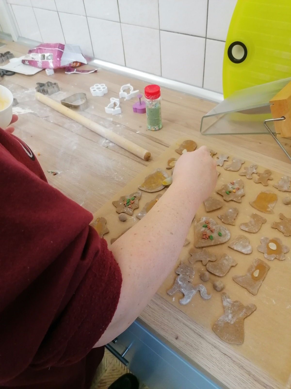 Für einen Vormittag verwandelte sich der Treff in der Hellersdorfer Kastanienallee in eine Weihnachtsbäckerei. Es wurden Unmengen duftender, wohlschmeckender Plätzchen gebacken, die zum Schluss noch bunt verziert wurden.