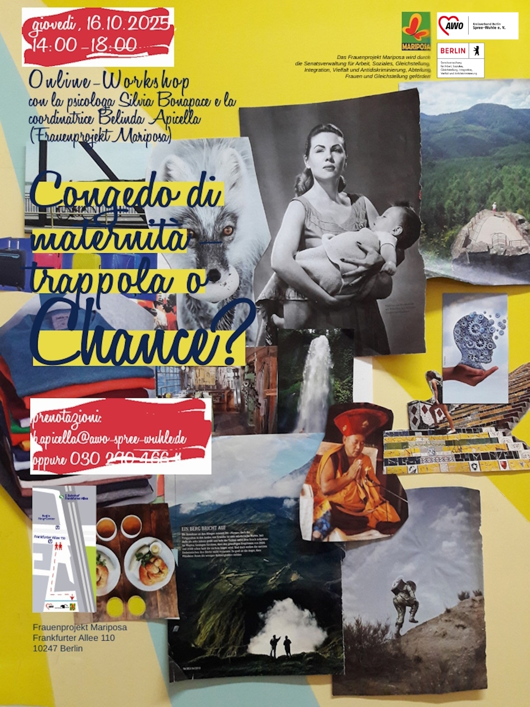 Der Workshop wird zweisprachig Deutsch-Italienisch vom Frauenprojekt Mariposa in Kooperation mit der perinatalen Psychologin Silvia Bonapace angeboten.