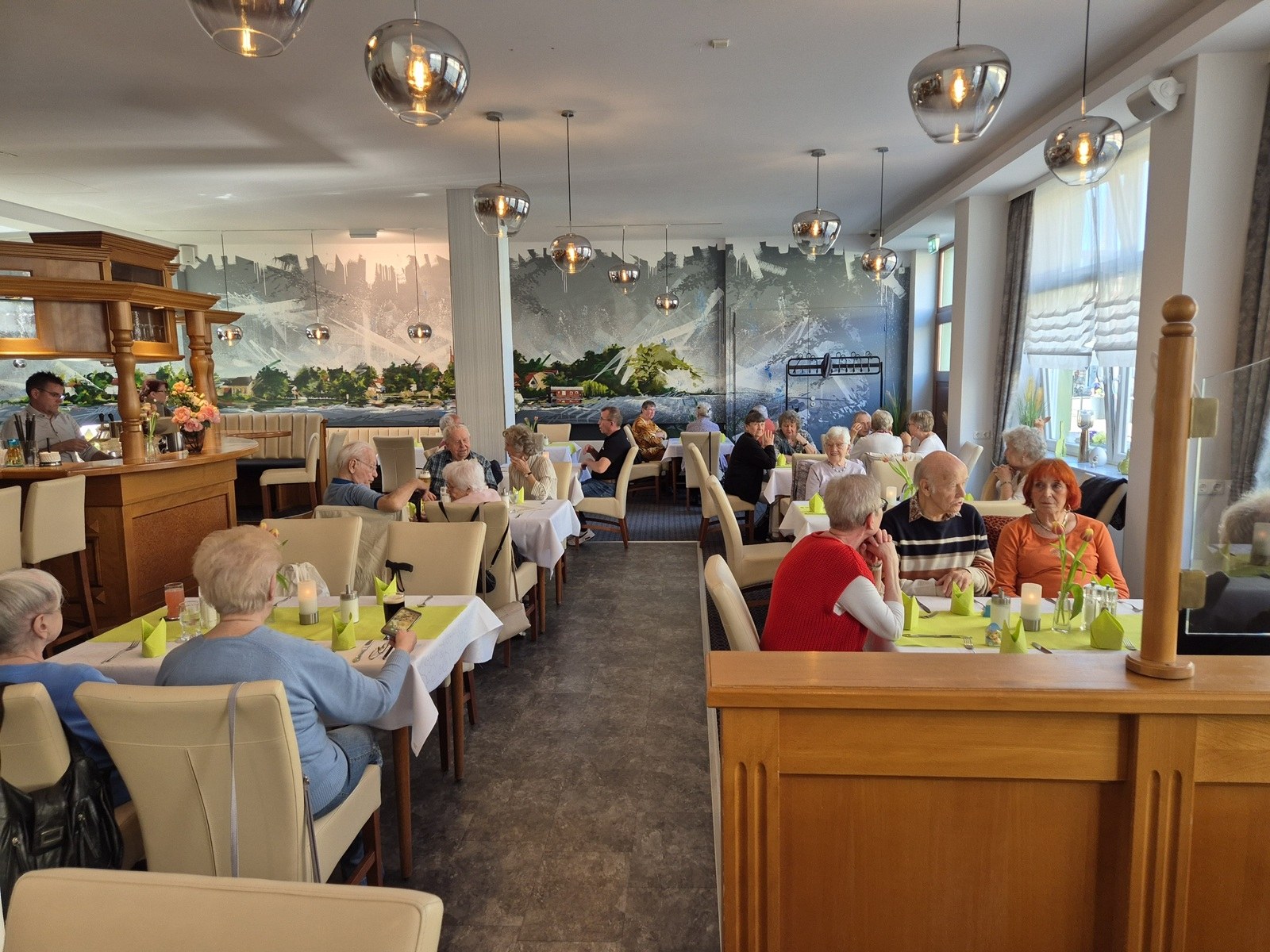 Auf der Festlandseite wurden wir zum Kaffeetrinken im Restaurant „Zur Pfaueninsel“ im Biergarten erwartet.
