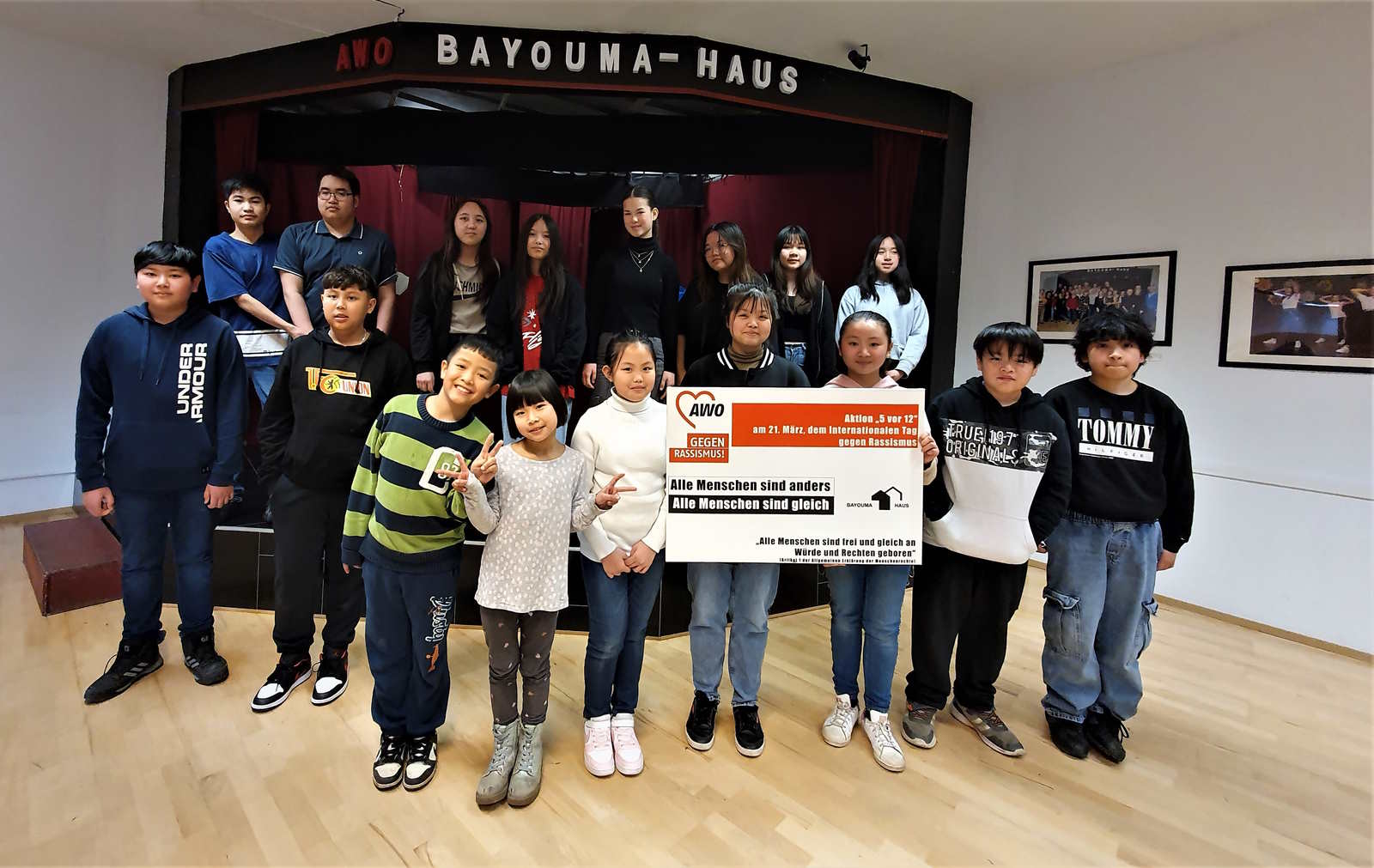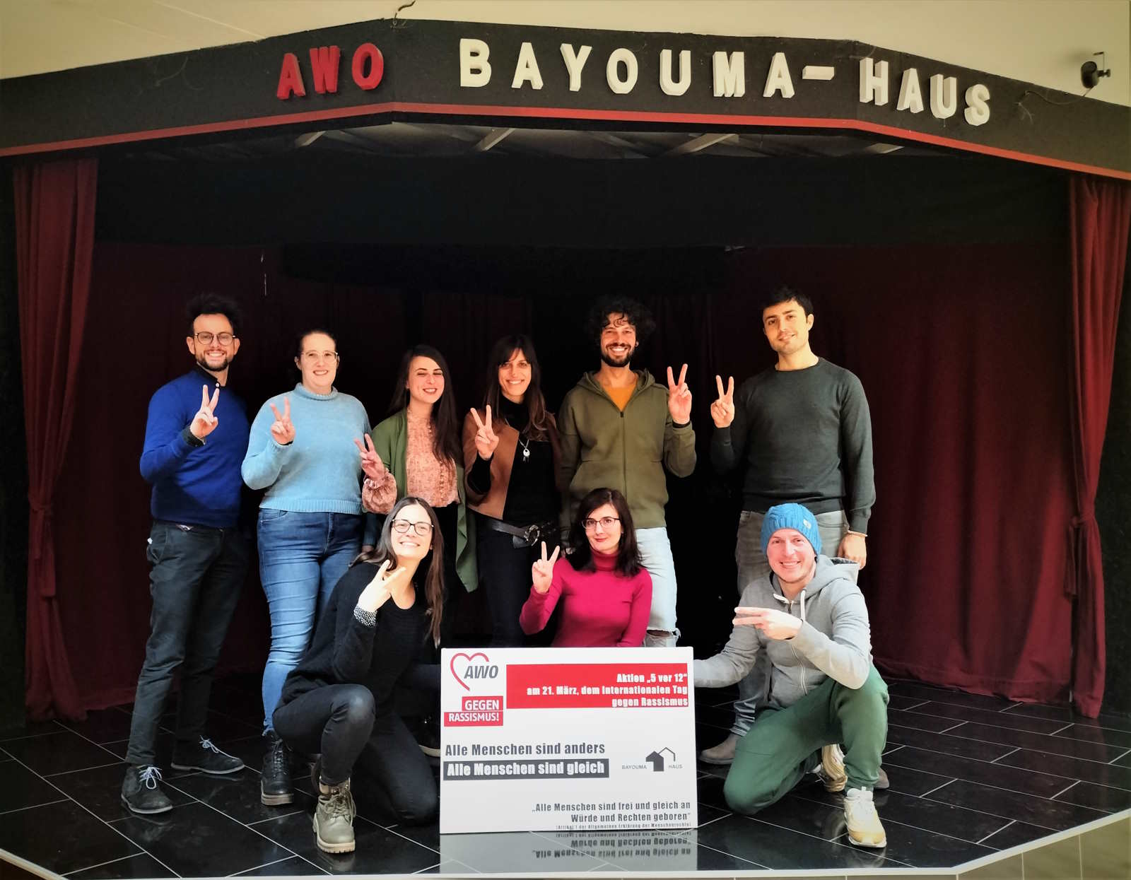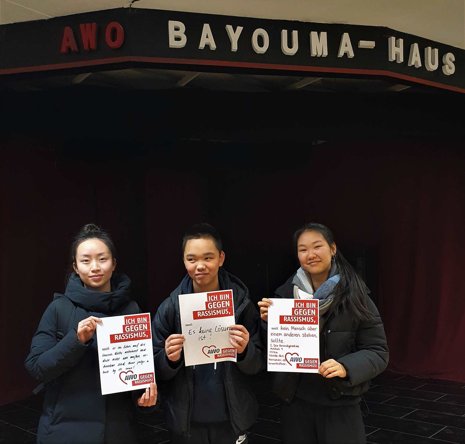 Anlässlich des Internationalen Tags gegen Rassismus haben die unterschiedlichsten Gruppen und Besucher*innen des Bayouma-Hauses dazu Stellung genommen. Die hier gezeigten Fotos mit persönlichen Statements wurden im Vorfeld des Tags gegen Rassismus gemacht und haben eine klare Botschaft, hier ist kein Platz für Rassismus, hier lebt Vielfalt, Toleranz und Offenheit.