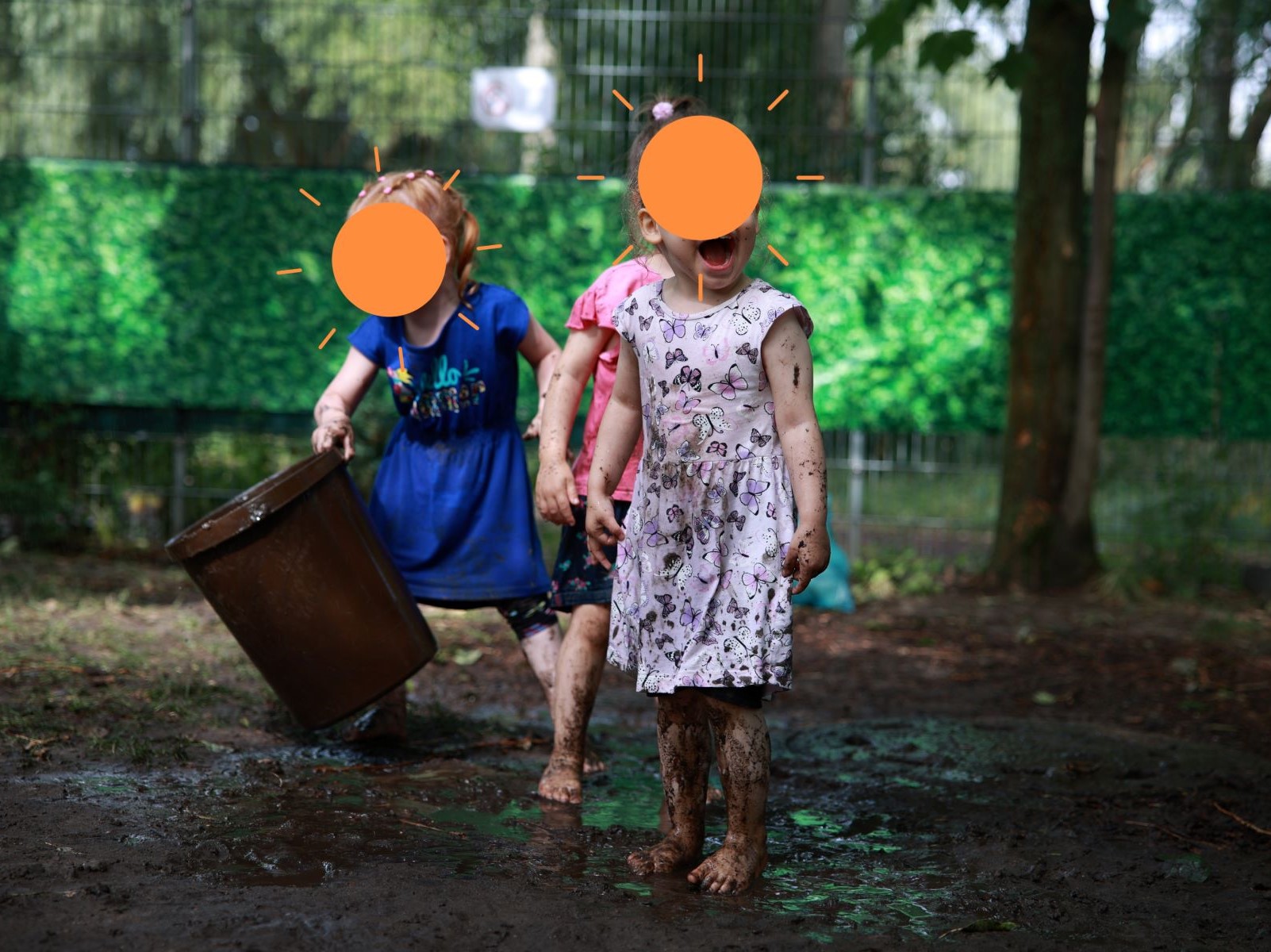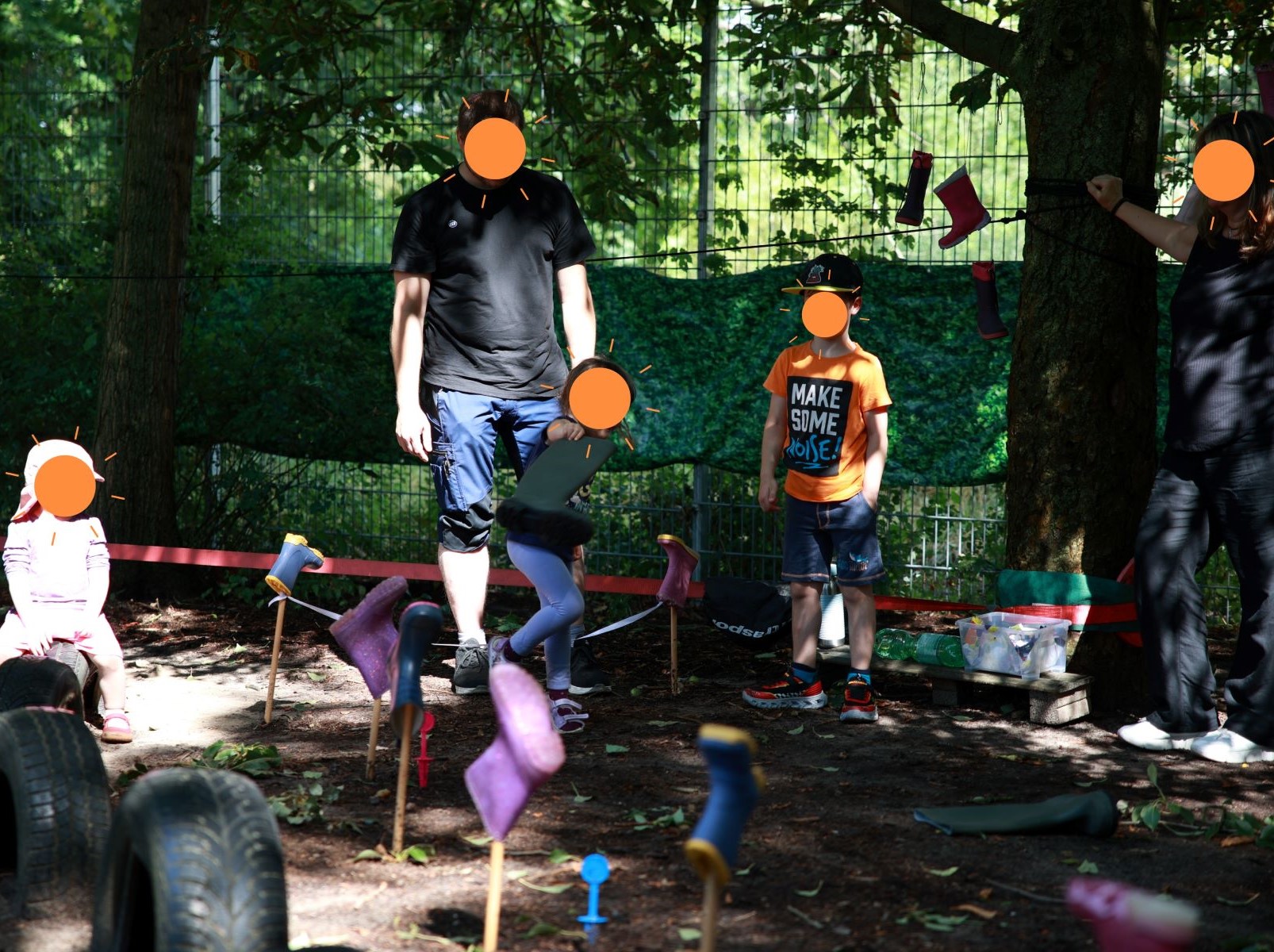 Man konnte sich im Gummistiefelweitwurf probieren oder auch beim Apfelfischen. Schaumstoffwürfelschlacht und Tauziehen boten Wettbewerb und in der Matschecke konnte man sich mal richtig schmutzig machen.