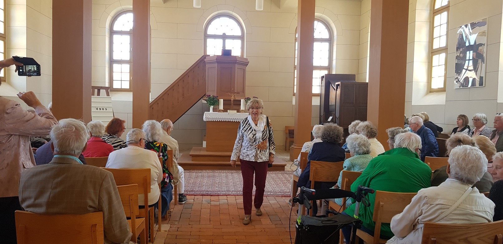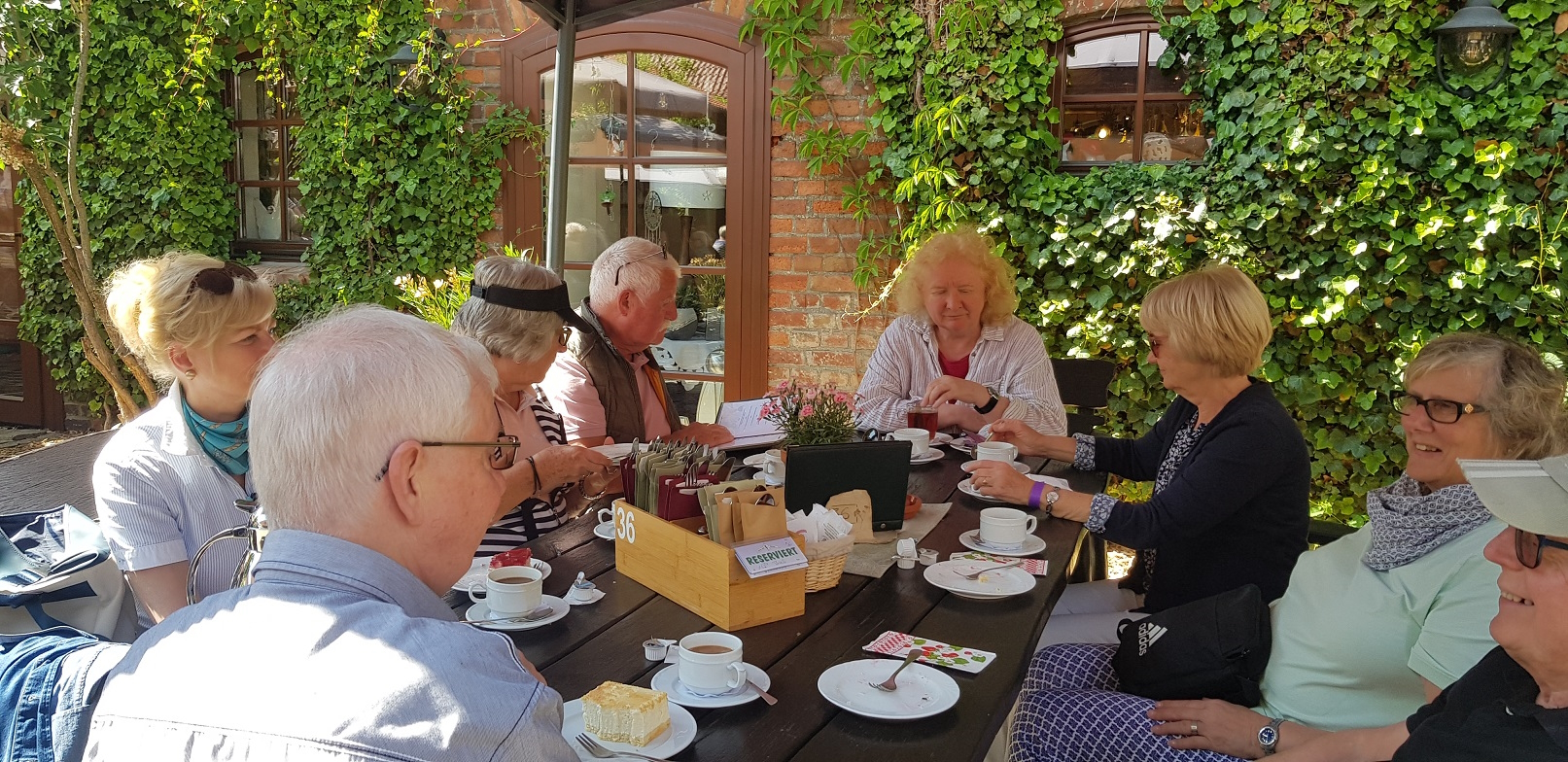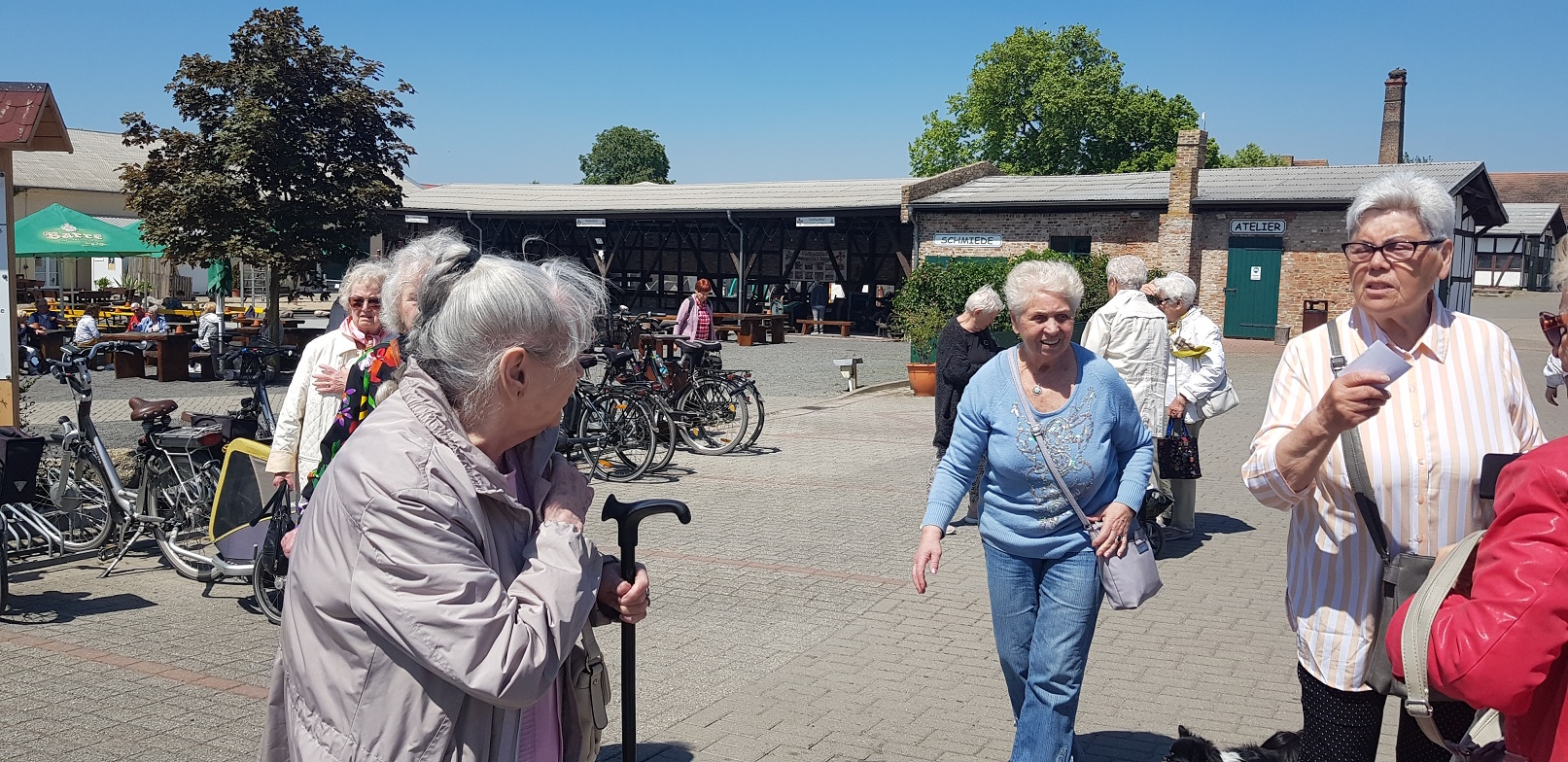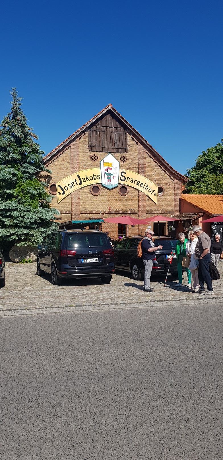 Hier konnte zunächst die Dorfkirche besucht werden, um etwas über Geschichte und Architektur zu erfahren und danach über das 5-Minuten-Museum zum wunderschönen Vier-Seitenhof-Spargelhof zu wandern. Dort erwartete vor der Heimreise alle ein großen Stück frischer Erdbeerkuchen und Kaffee.