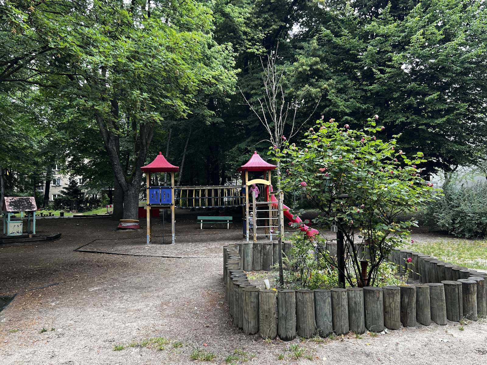 Die Kita Sonnenschein hat einen großen, wunderbaren Garten. Da ist auch noch Platz, den Kindern einen großen Wunsch zu erfüllen. Im hinteren Bereich des Gartens vor dem gelben Gartenhaus soll ein Bewegungsbereich (Sportplatz) entstehen, wo sie sich frei bewegen können, wo Platz zum Hüpfen, Springen, Fußball- oder Basketball spielen ist.