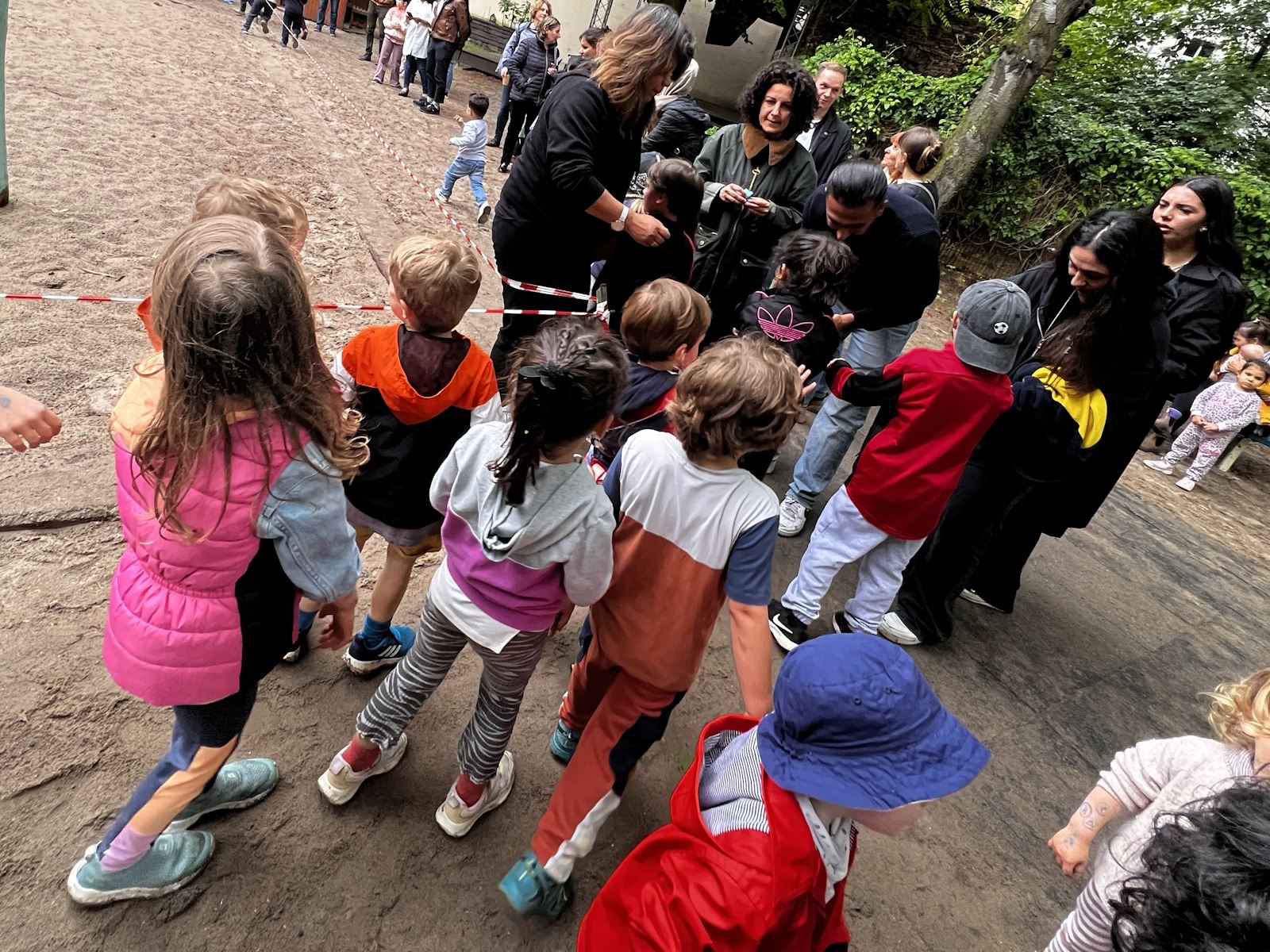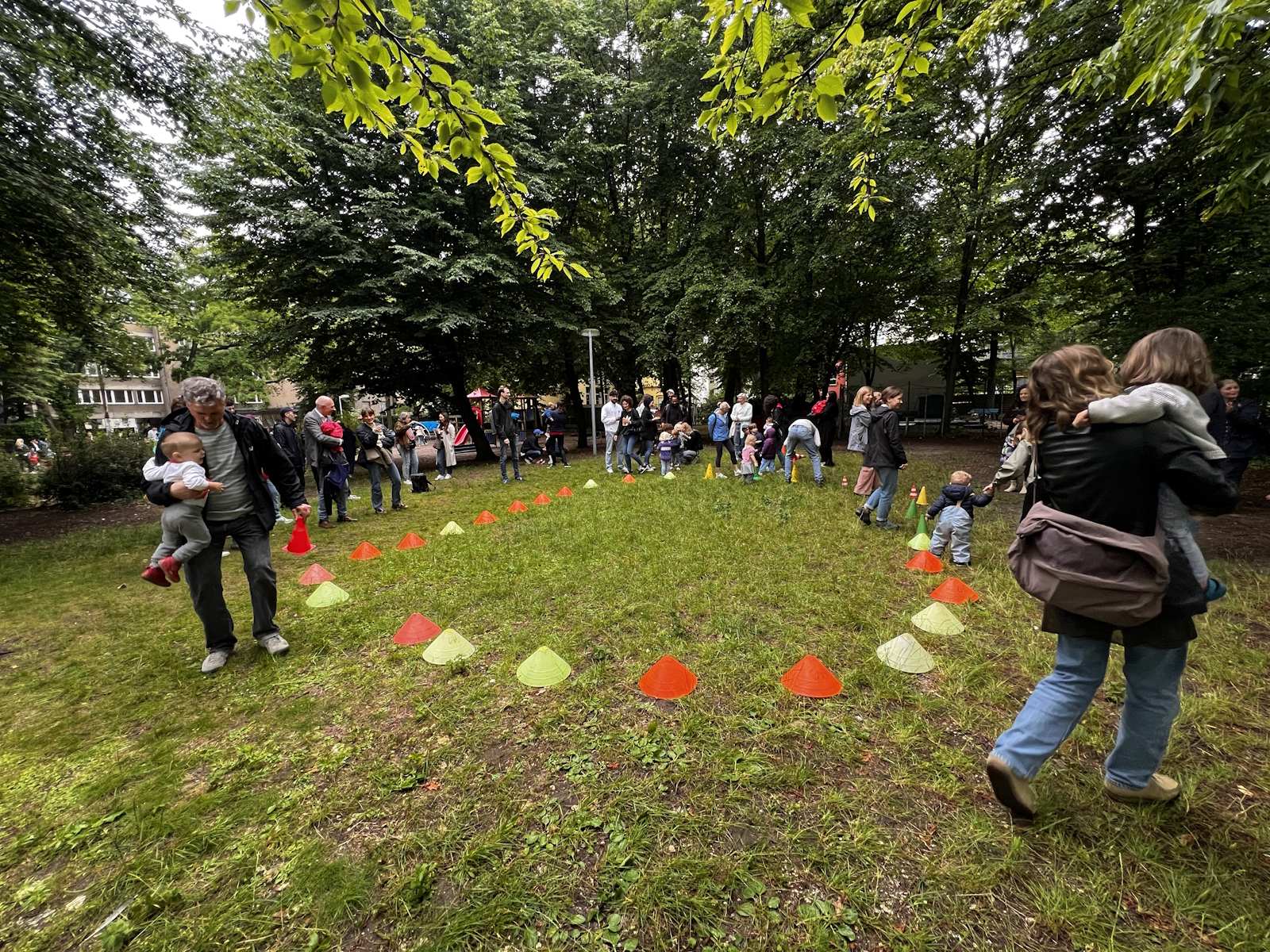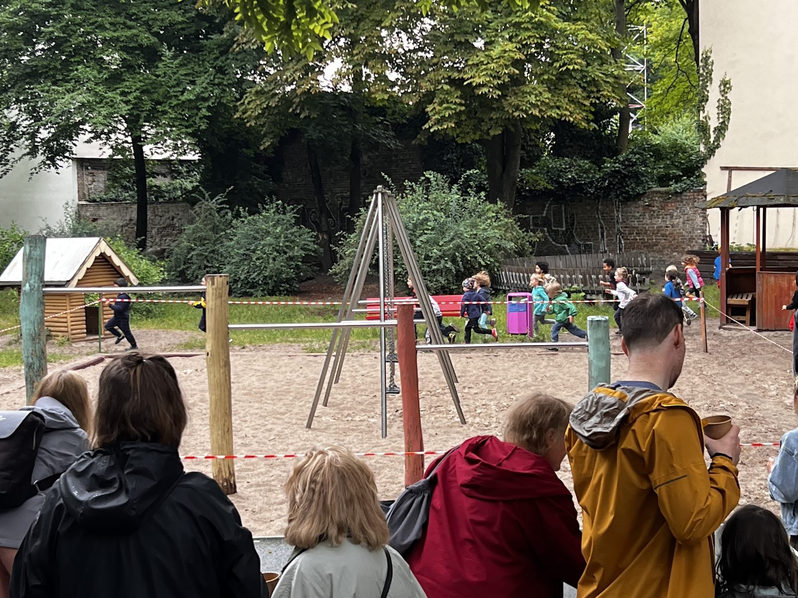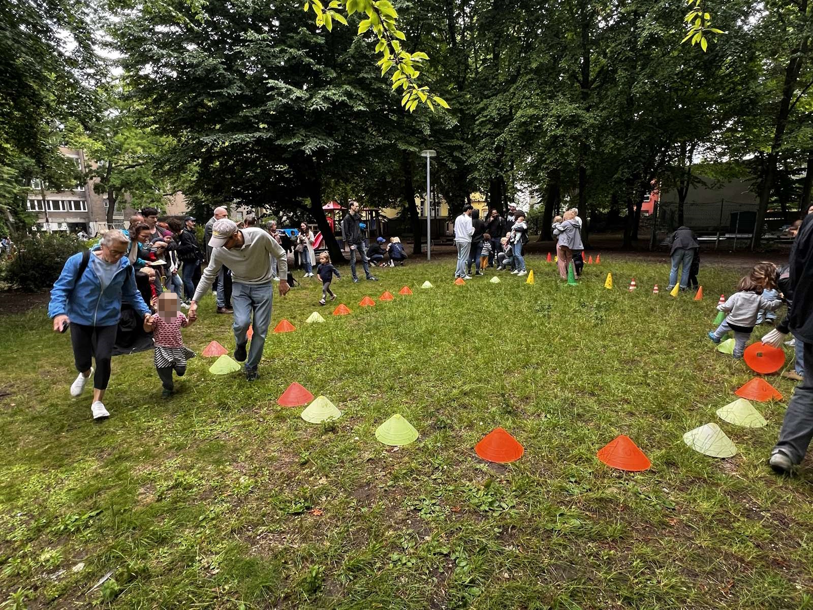 Für den Lauf waren zwei Rennstrecken vorbereitet, für die Jüngeren ein Kreis auf der Wiese und für die Größeren eine Runde um den Spielplatz.
