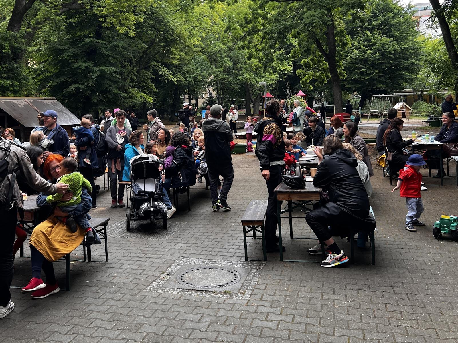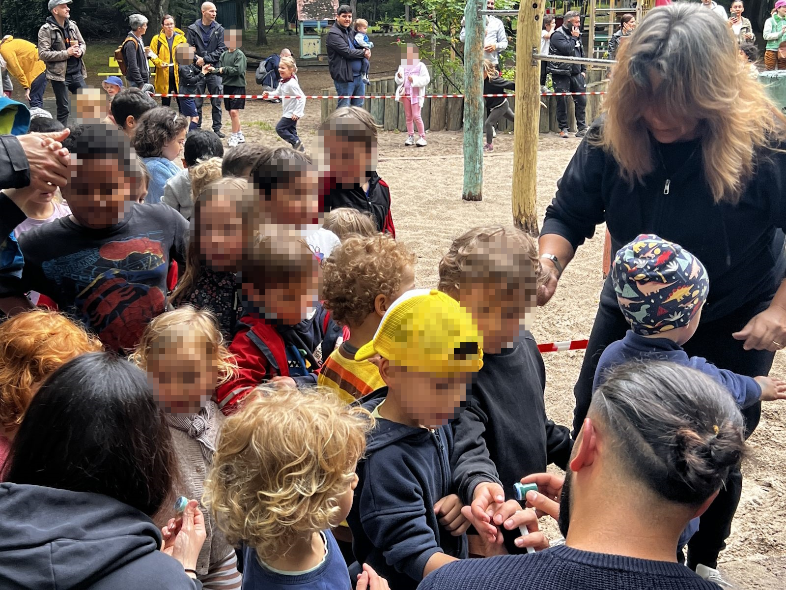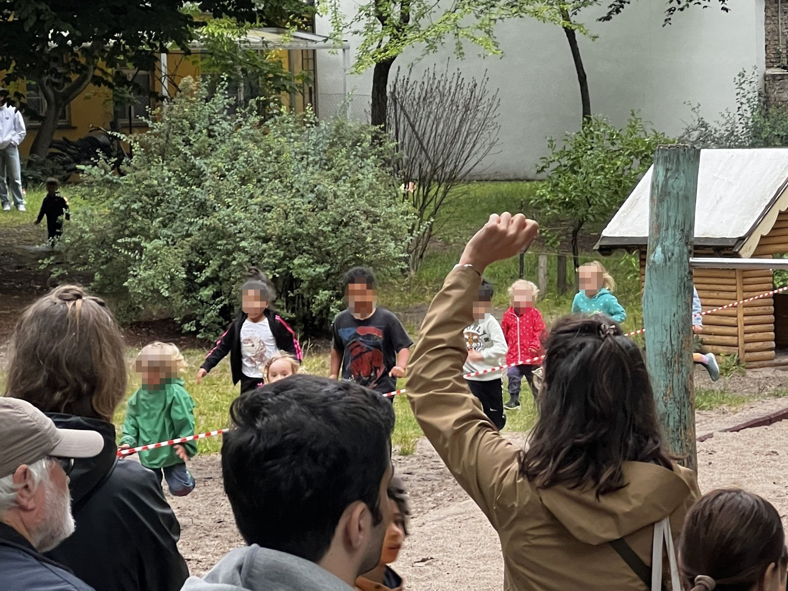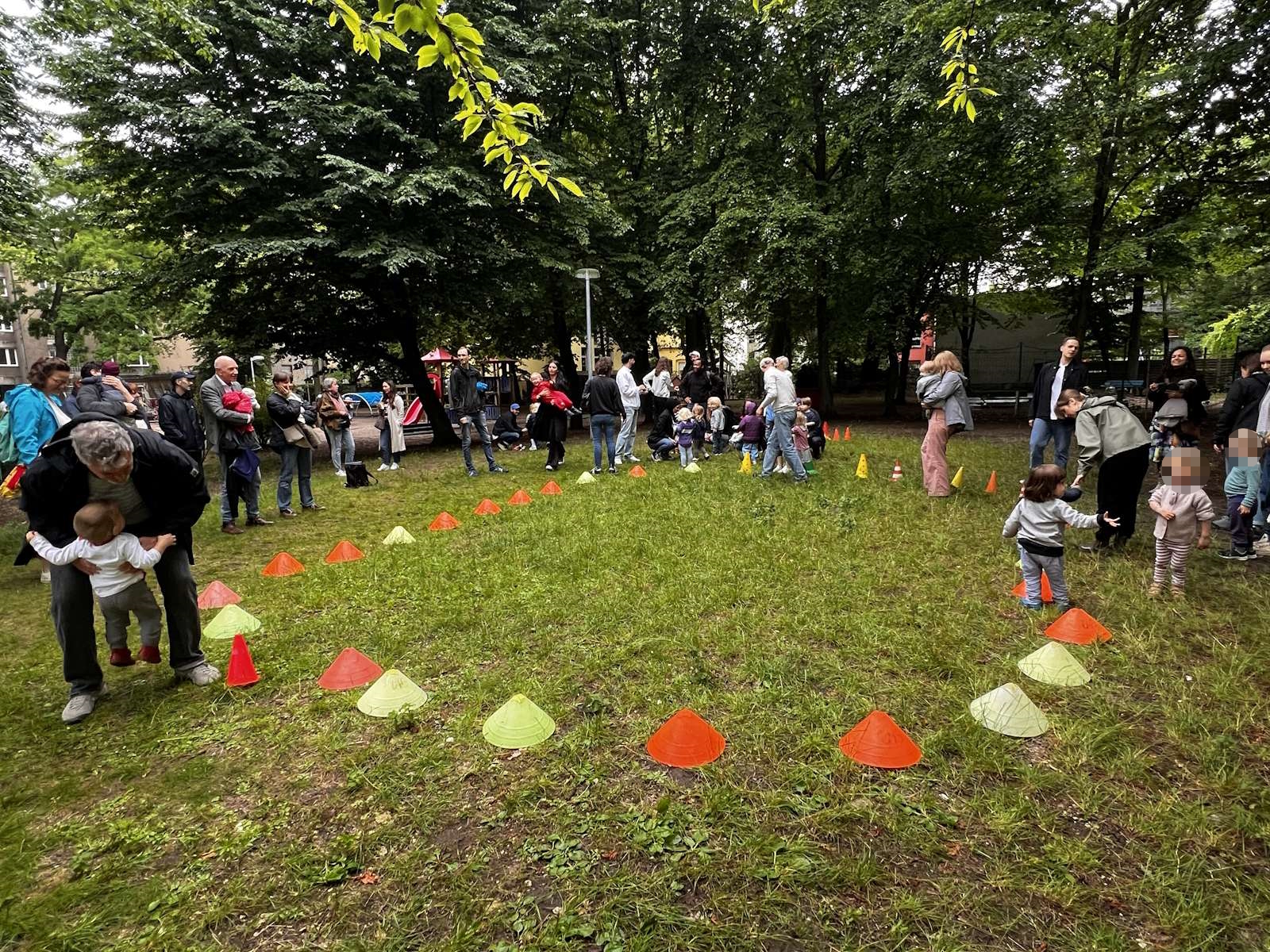 Für den Lauf waren zwei Rennstrecken vorbereitet, für die Jüngeren ein Kreis auf der Wiese und für die Größeren eine Runde um den Spielplatz.