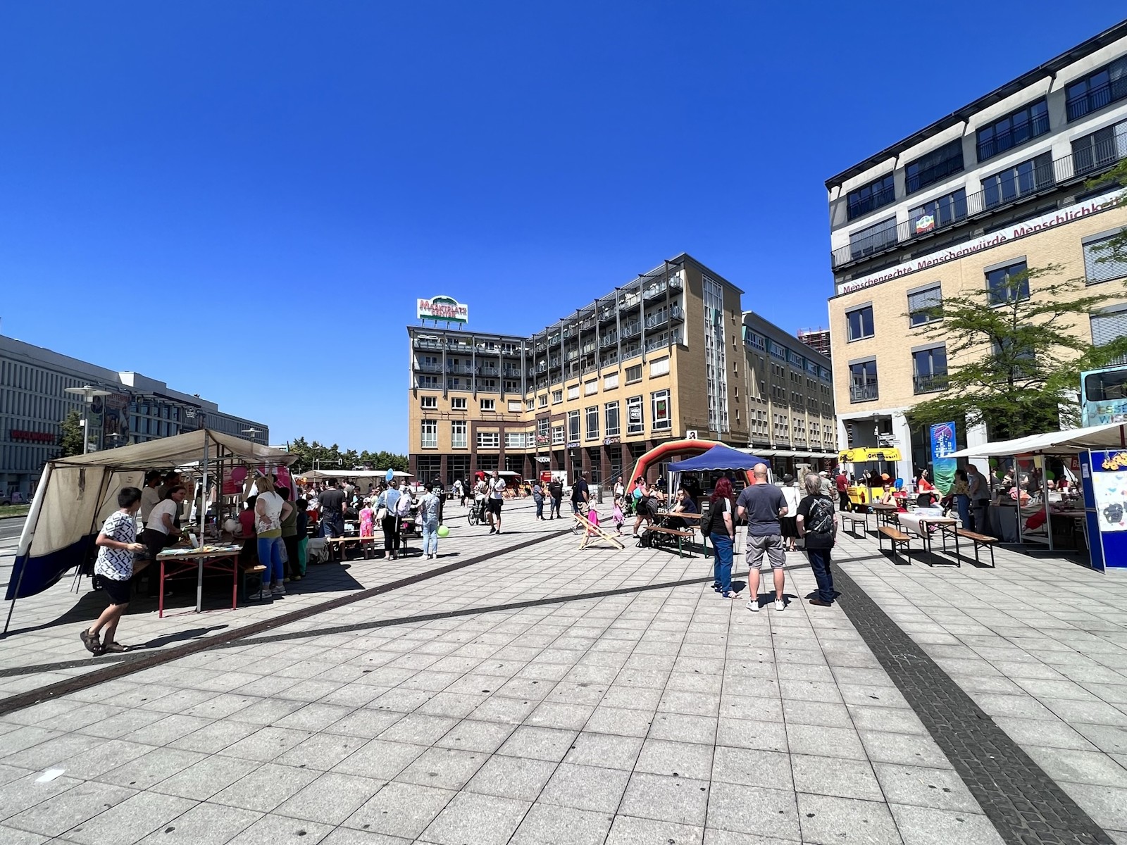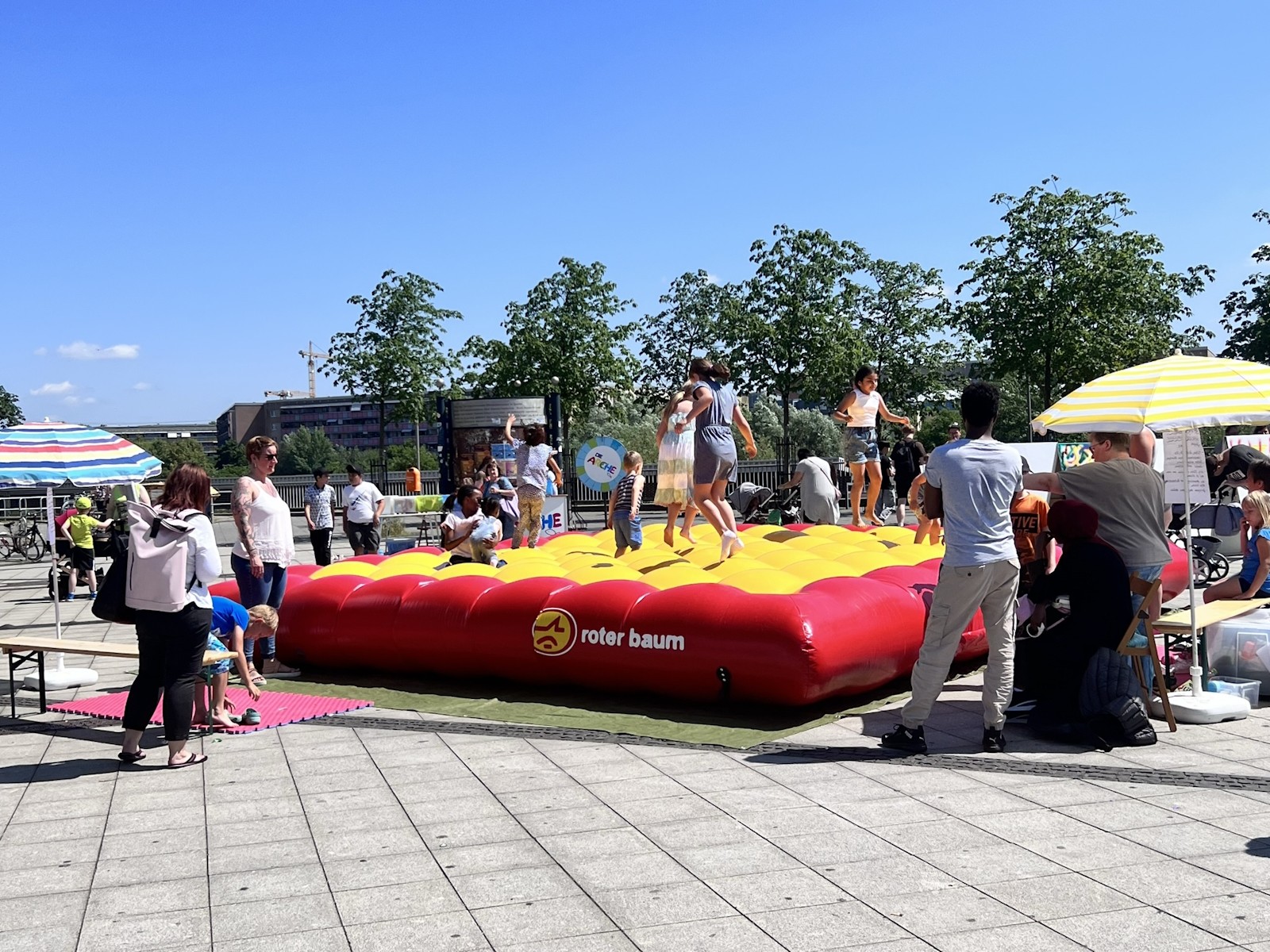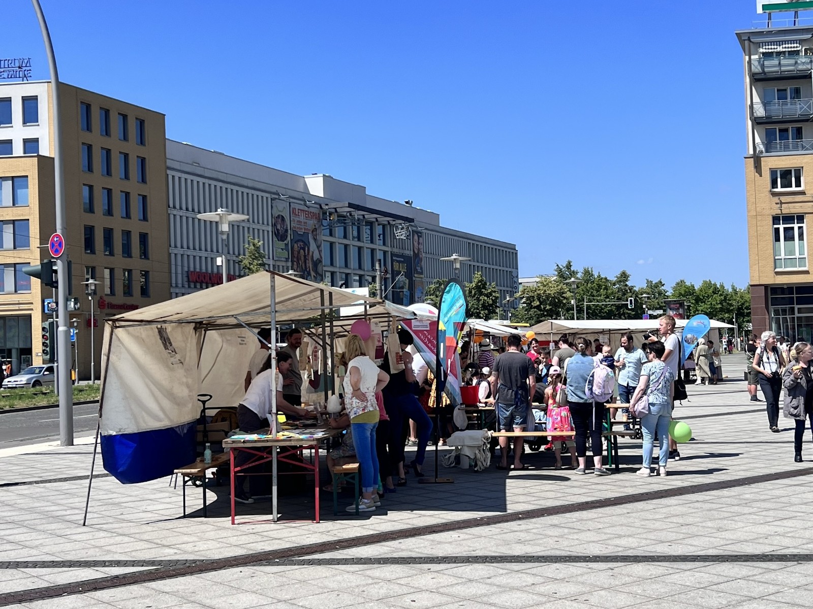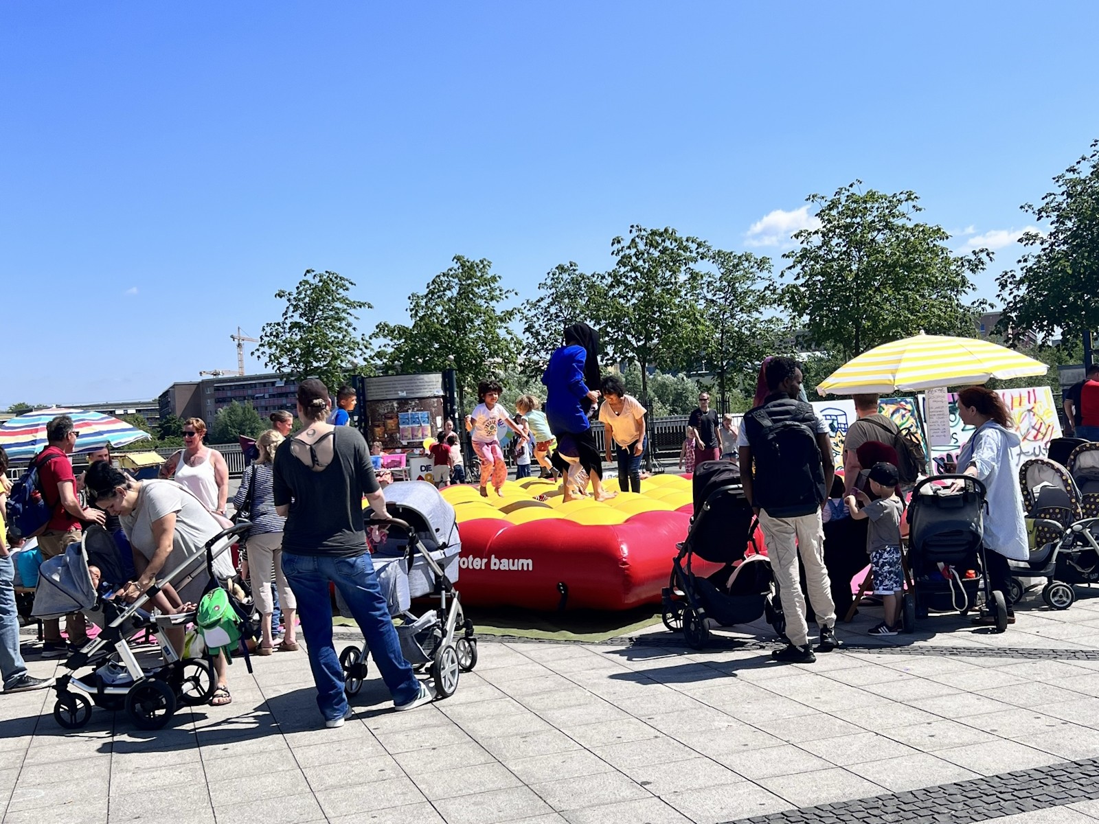 Das Stadtteilfest ist seit vielen Jahren ein Angebot von Einrichtungen und Projekten aus der Nachbarschaft rund um die Helle Mitte. Viele Bunte Stände boten Spiel- und Kreativangebote, Basteln und Schminken, Essen und Getränke, Kochbus, Grillen, Waffeln und Informatives. Für Kinder gab es eine Hüpfburg und andere Bewegungsangebote, für etwas Größere Graffiti und Streetball, mittendrin eine Bühne mit Auftrittsmöglichkeiten für junge Bands und Tanzgruppen.