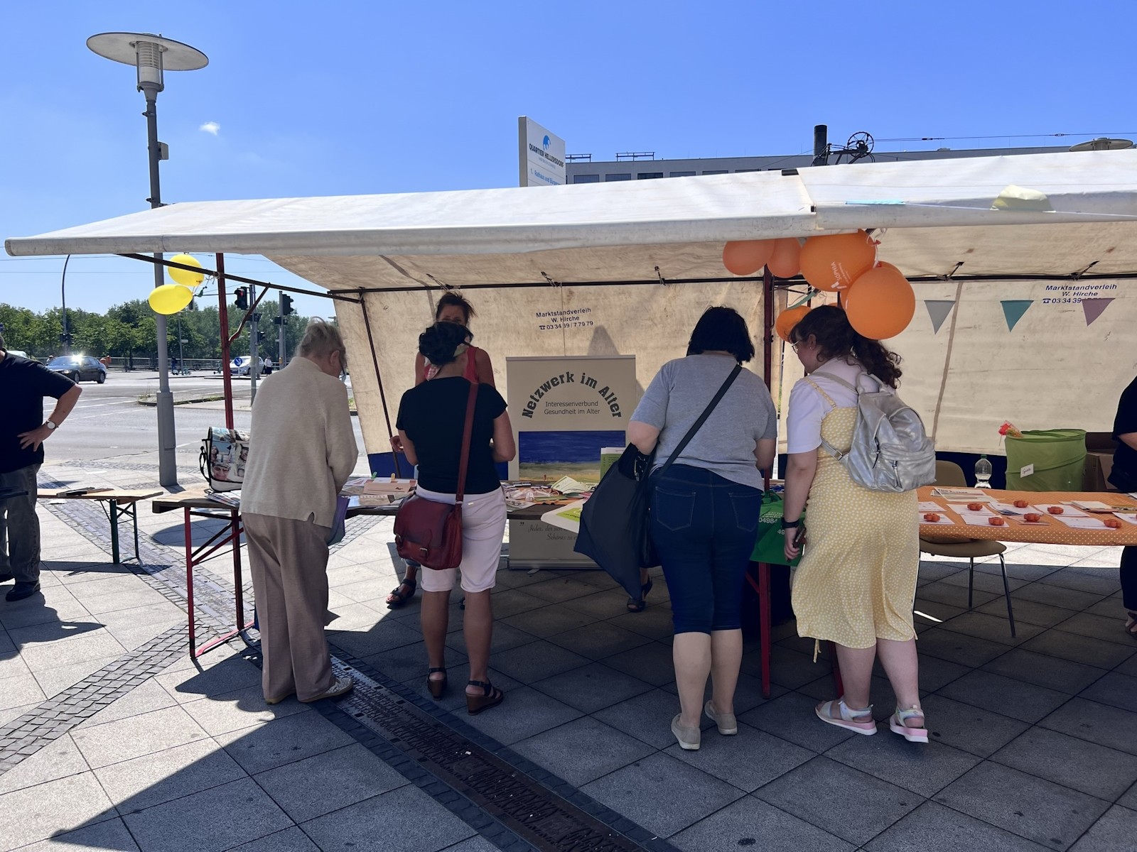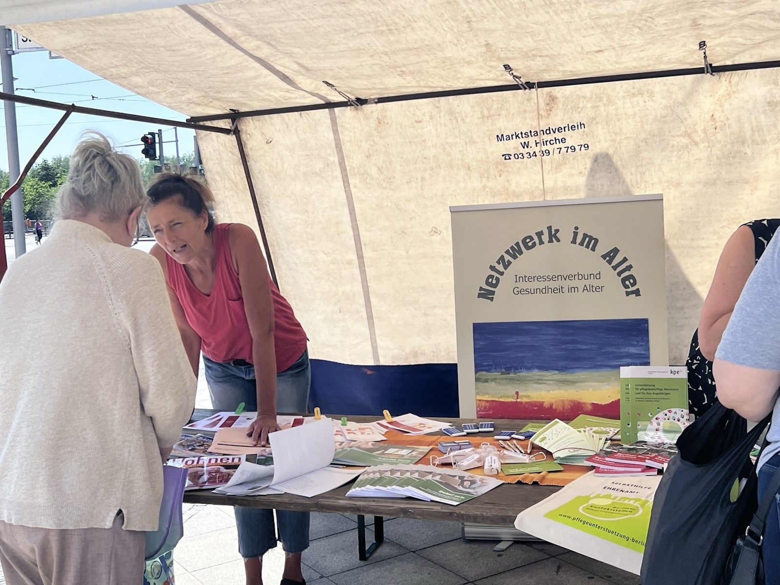 Mit dabei war auch der AWO Stadtteiltreff aus der Kastanienallee im Verbund des Netzwerks im Alter – Interessenverbund Gesundheit im Alter, gemeinsam am Stand mit der Kontaktstelle PflegeEngagement. Hier gab es, gut nachgefragt, viele Informationen über die Angebote für Ältere im Bezirk, zu Freizeit und Beratung wie auch zu Möglichkeiten aktiv das Alter im Bezirk mitzugestalten.