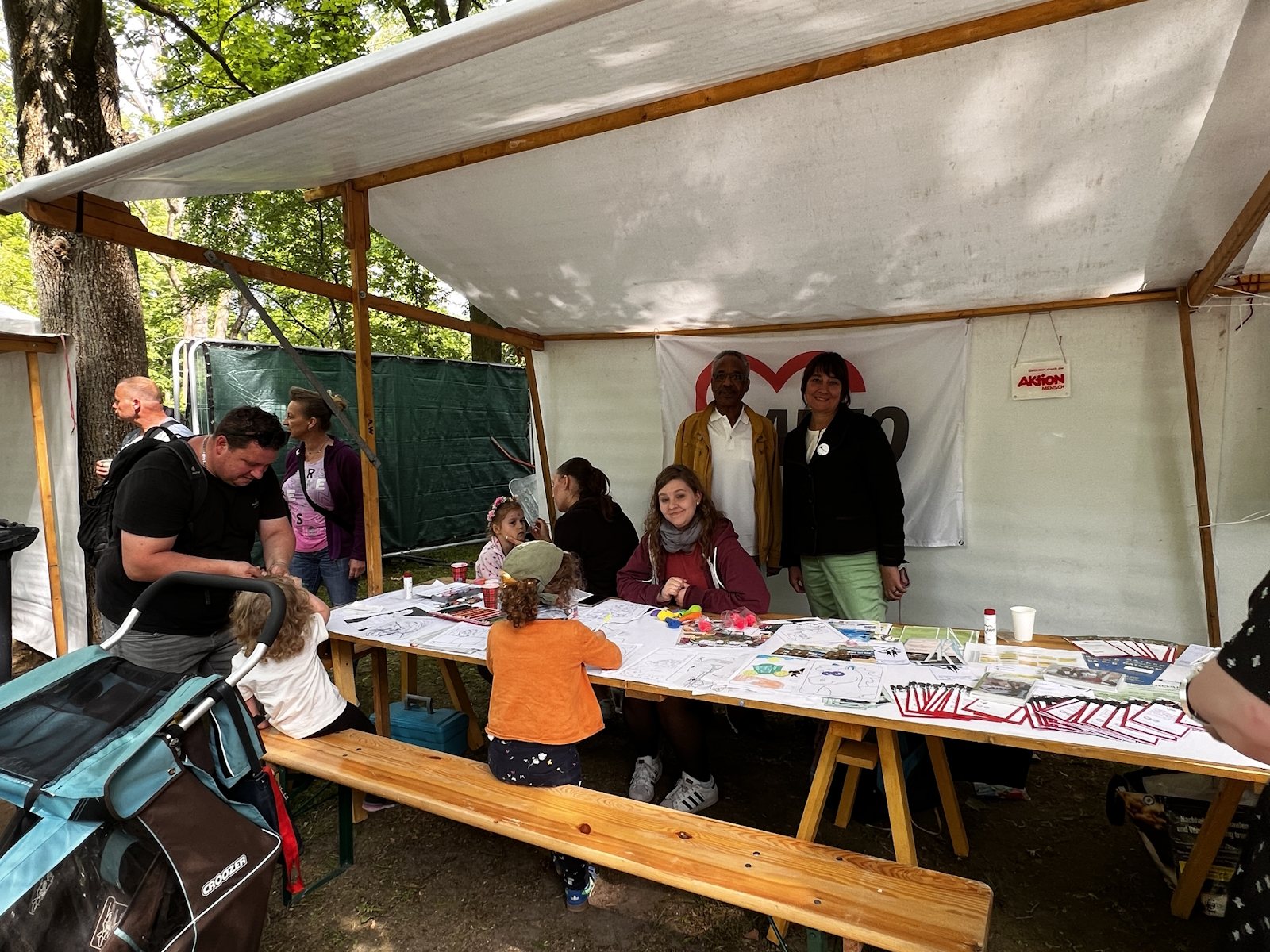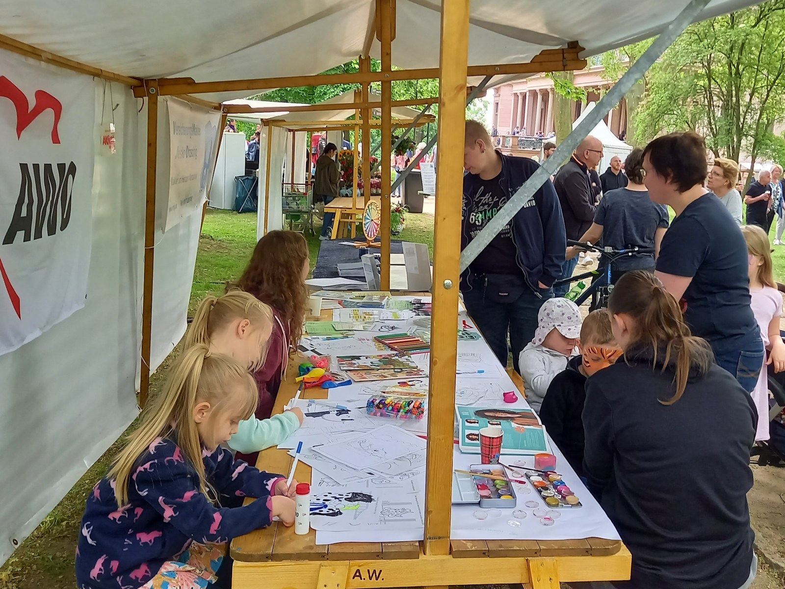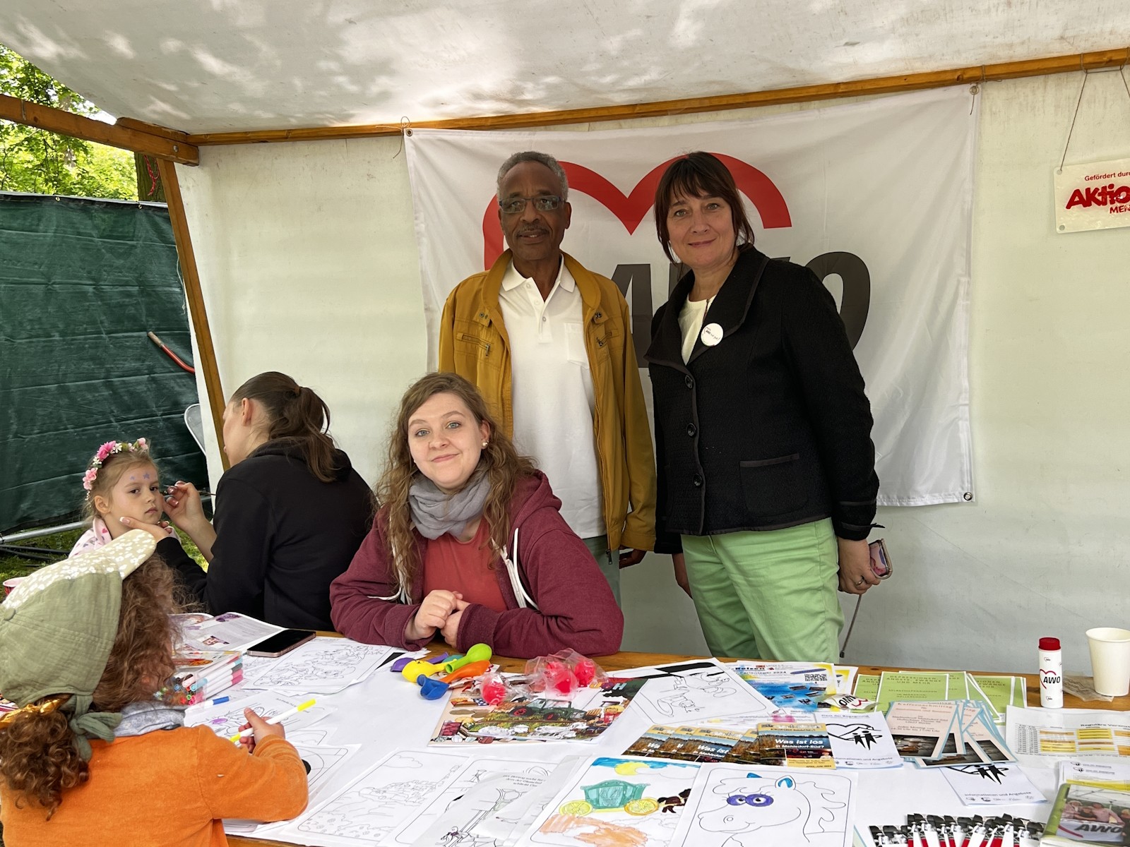 Der AWO-Stadtteiltreff Mahlsdorf-Süd war Teil dieses Angebots mit einem Stand an dem Kinderschminken und ein AWO Malwettbewerb viel Zulauf fanden. Viele Kinder und ihre Eltern waren am Stand zu Besuch und informierten sich auch über die Angebote in Mahlsdorf.