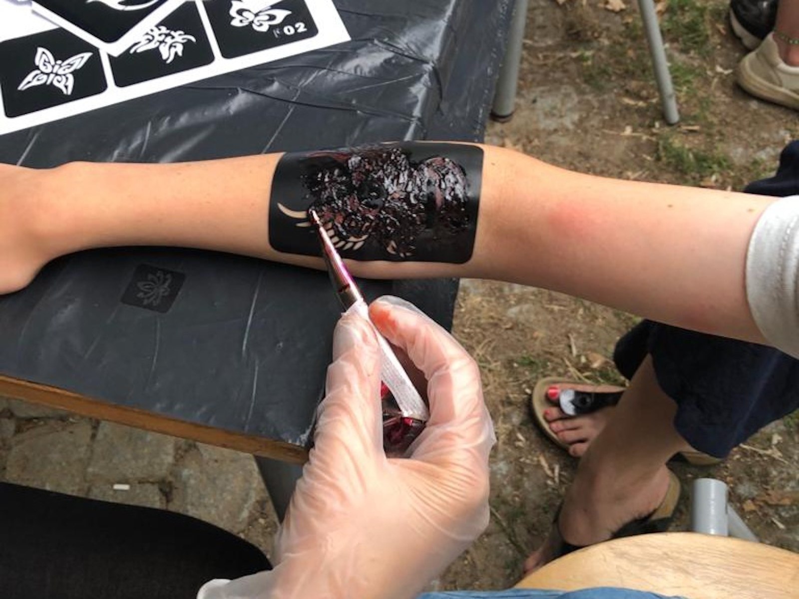 Ein Glücksrad drehte sich fleißig und verteilte kleine Preise während eine Graffitiwand die kreativen Köpfe anlockte, um bunte Kunstwerke zu hinterlassen. Kinder und Jugendliche ließen sich mit Henna bunte Tattoos malen und eine talentierte Friseurin schnitt den Besucher*innen kostenlos die Haare.