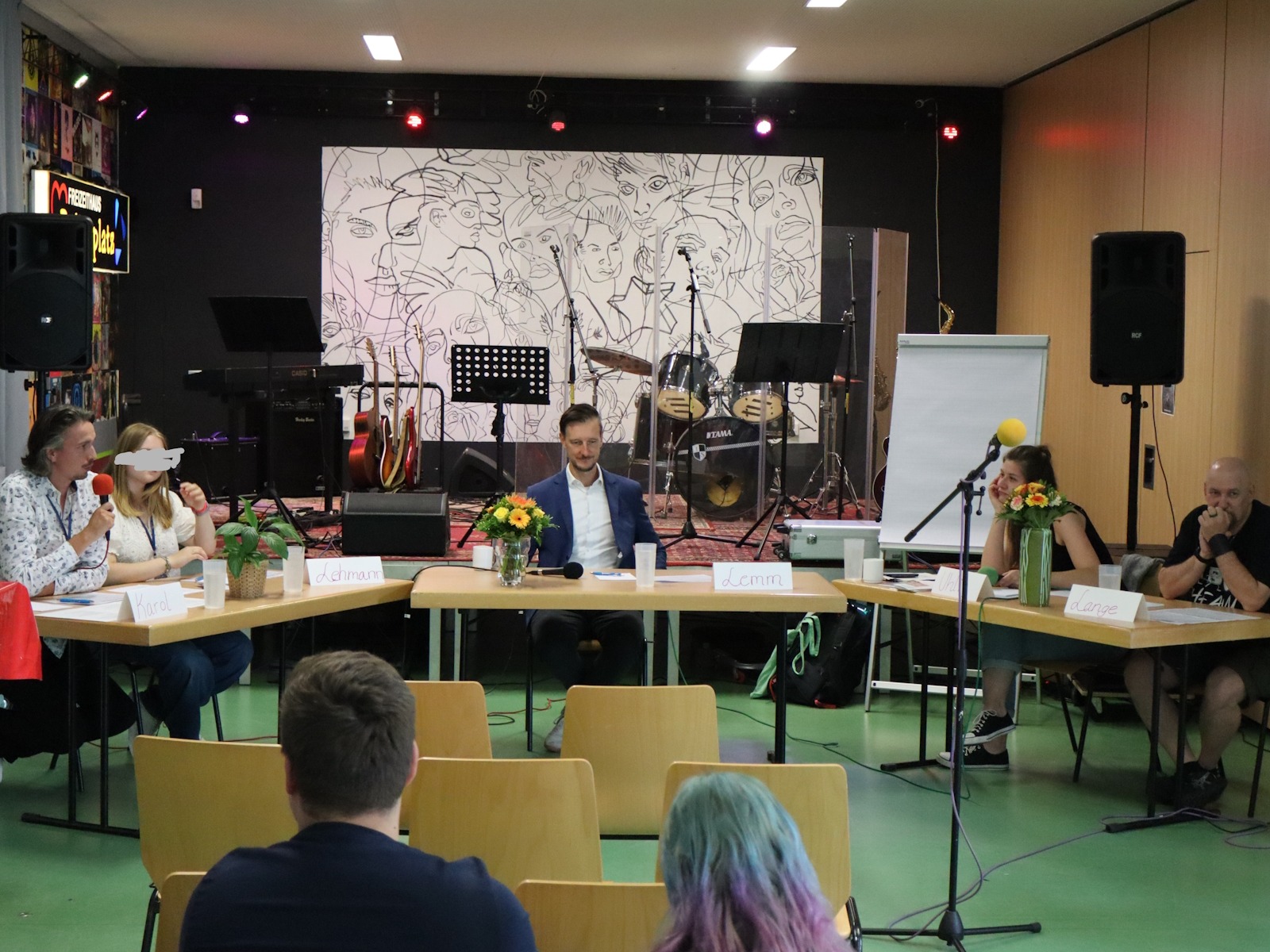 Um 15 Uhr folgte eine Podiumsdiskussion „Gemeinsam für Biesdorf“ mit Bezirksstadtrat Gordon Lemm, dem Leiter der JFE Balzerplatz Marvin …, einer Vertreterin der Jugendlichen aus der JFE und einem Elternvertreter. Der spannende Austausch galt der Zukunft der Freizeiteinrichtung, der weiteren Profilierung der Angebote und bot der Nachbarschaft die Gelegenheiten, Wünsche und Bedürfnisse an die JFE Balzerplatz und die Bezirkspolitik zu richten.