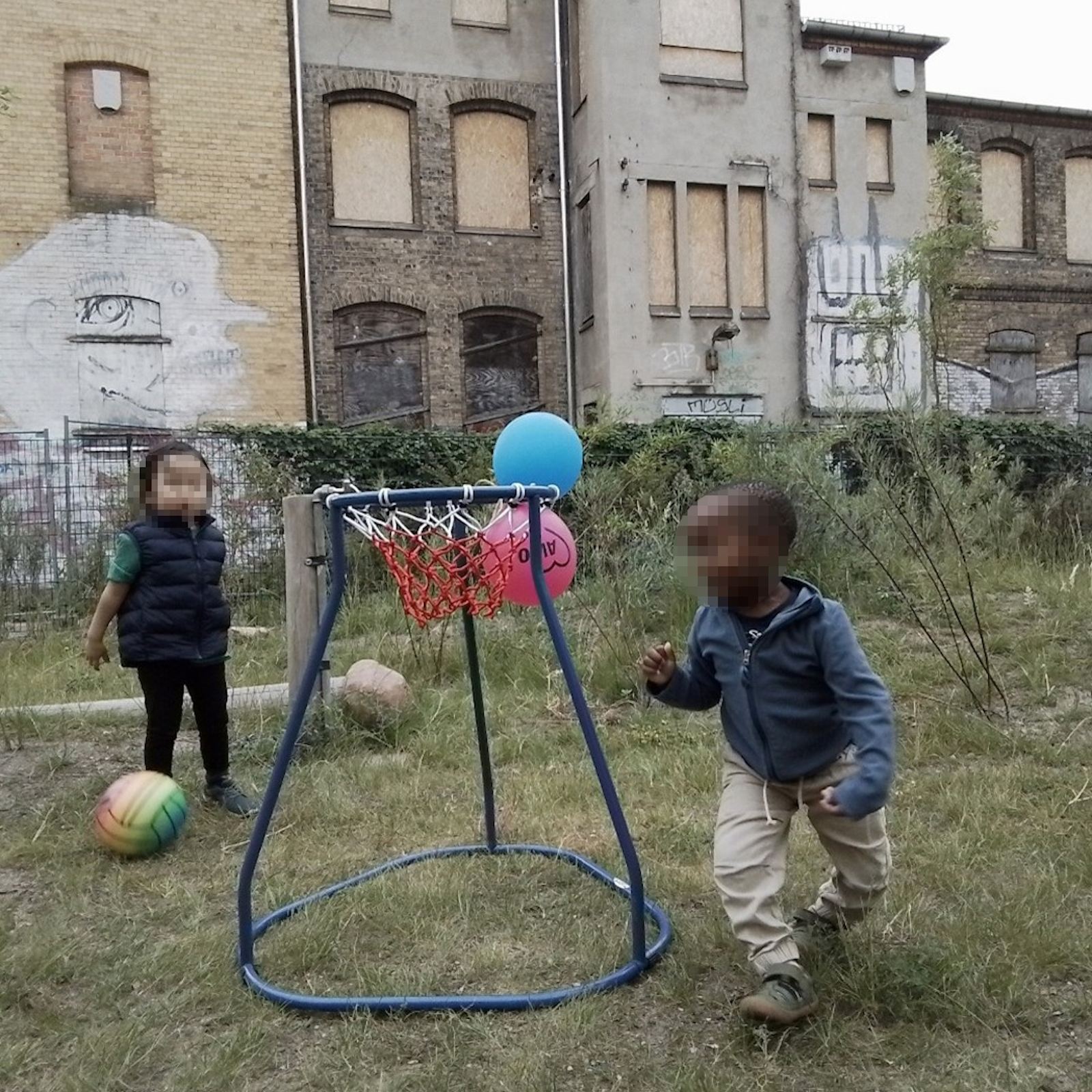 In ständiger Benutzung ist nun auch der neue Basketballkorb. Kleine und große Bälle verschiedener Beschaffenheit werden von nah und fern sowie aus unterschiedlichen Positionen hindurchgeworfen. Ausdauer, Geschicklichkeit und Zielgenauigkeit sind dabei besonders gefragt.