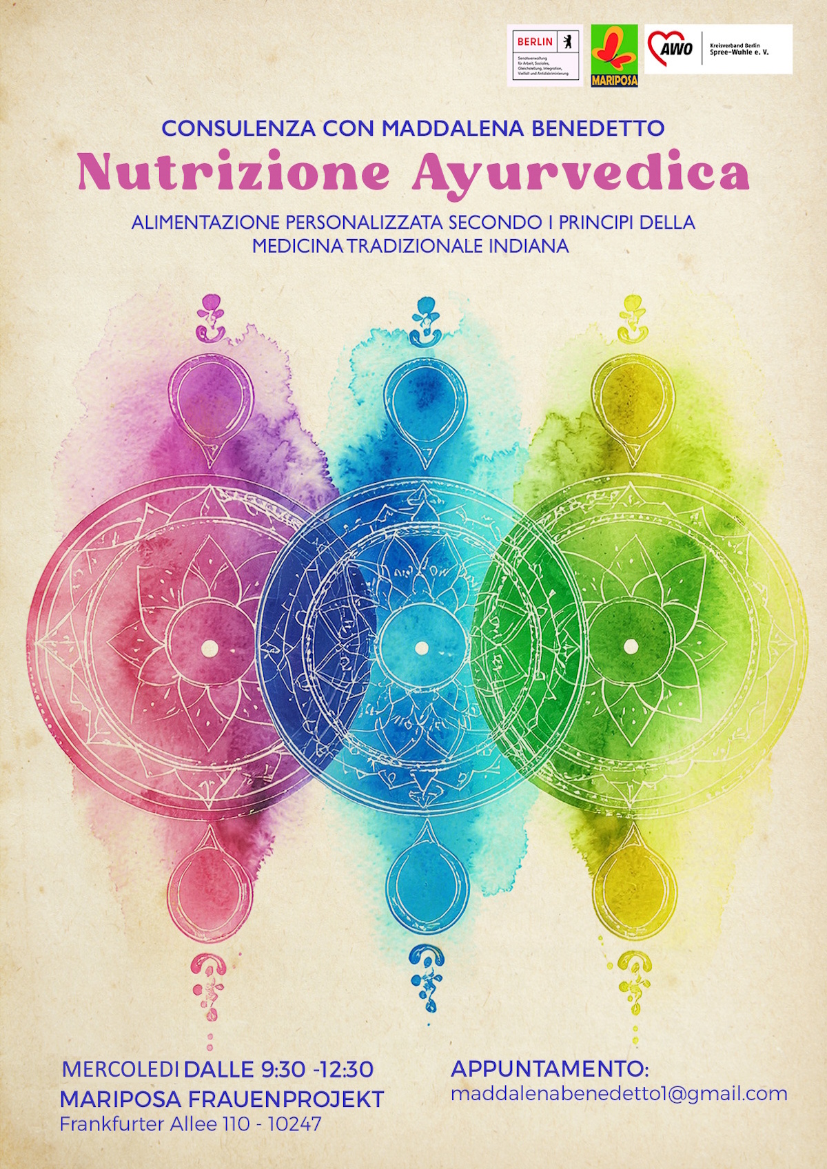 Ab sofort immer mittwochs von 09:30 bis 12:30 gibt es die Sprechstunde zur ayurvedischen Ernährungsberatung mit Maddalena Benedetto. Individuelle Ernährung nach Prinzipien der traditionellen indischen Medizin, gegen eine Spende.