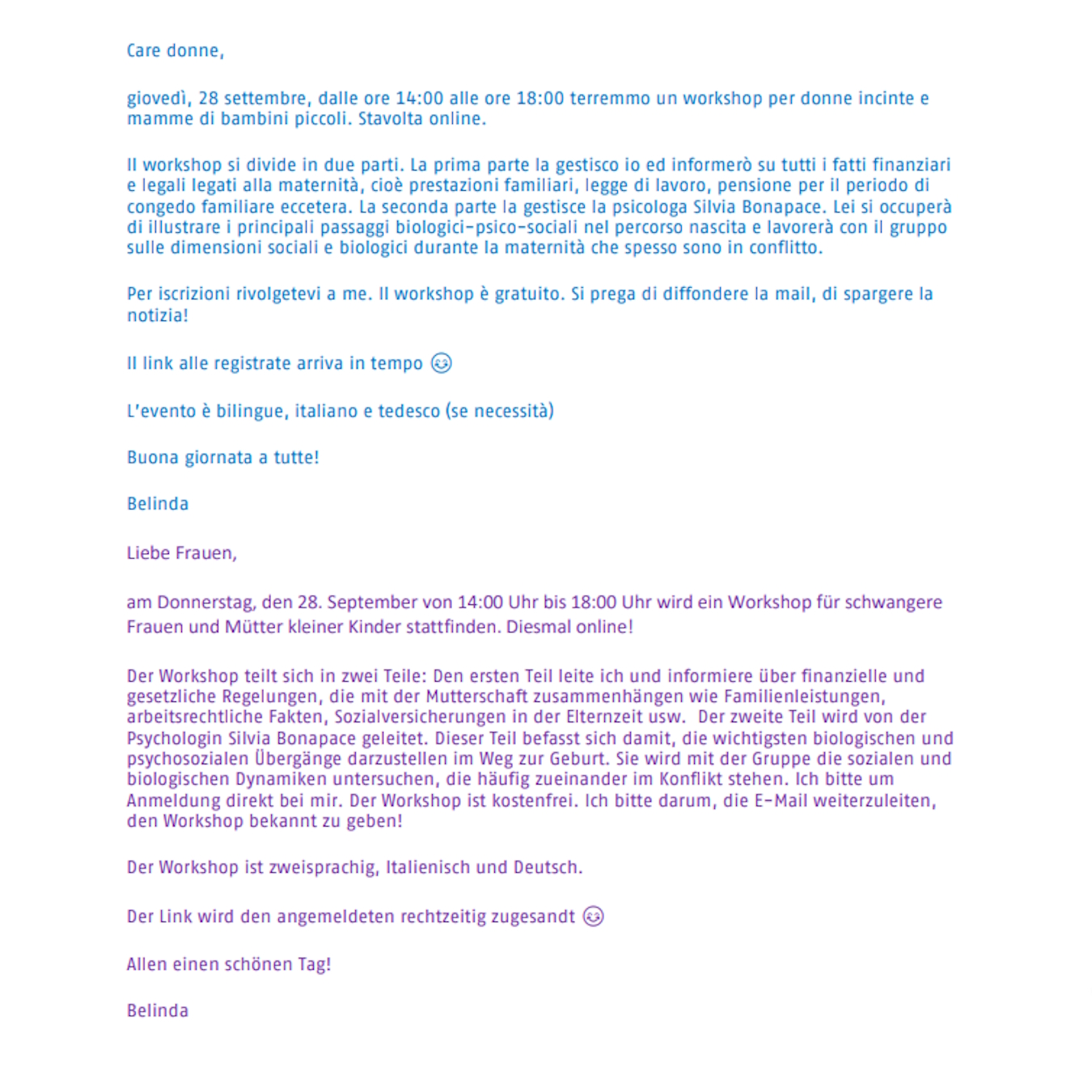 ein Workshop für schwangere Frauen und Mütter kleiner Kinder – online, zweisprachig, italienisch und deutsch
