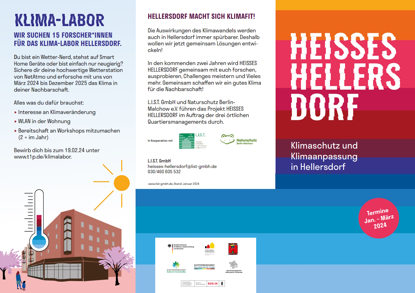 L.I.S.T. GmbH und Naturschutz BerlinMalchow e.V. führen das Projekt HEISSES HELLERSDORF im Auftrag der drei örtlichen Quartiersmanagements durch.