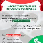 sono aperte le iscrizioni per PRIMA!, un laboratorio teatrale in lingua italiana rivolto a persone over 50. Un’occasione per mettersi in gioco, fare nuove esperienze e scoprire la gioia del teatro.