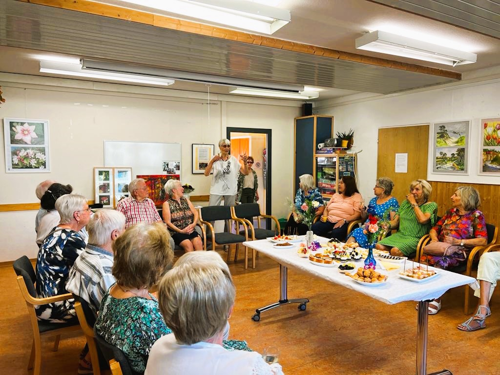 Am 15. August fand um 10 Uhr eine Vernissage mit Bildern des Malkurses „Die Dienstagsmaler“ statt. Die rege Teilnahme von 26 Besucher*innen zeugt von der Beliebtheit dieses Angebots.