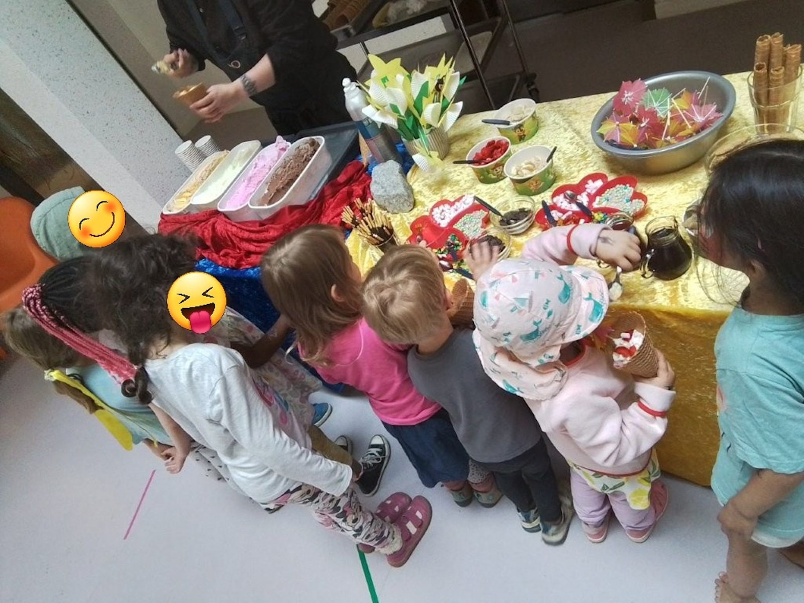 Zum Mittagessen gab es leckere Veggie-Hotdogs, bevor der Tag nach einer kleinen Ruhepause mit einem besonderen Highlight fortgesetzt wurde: dem Eisbuffet. Dort konnten sich die Kinder ihre Eisbecher mit bunten Toppings und Waffeln ganz nach eigenem Geschmack zusammenstellen. Zusätzlich sorgte ein Schminkangebot für leuchtende Augen und fantasievolle Verwandlungen.