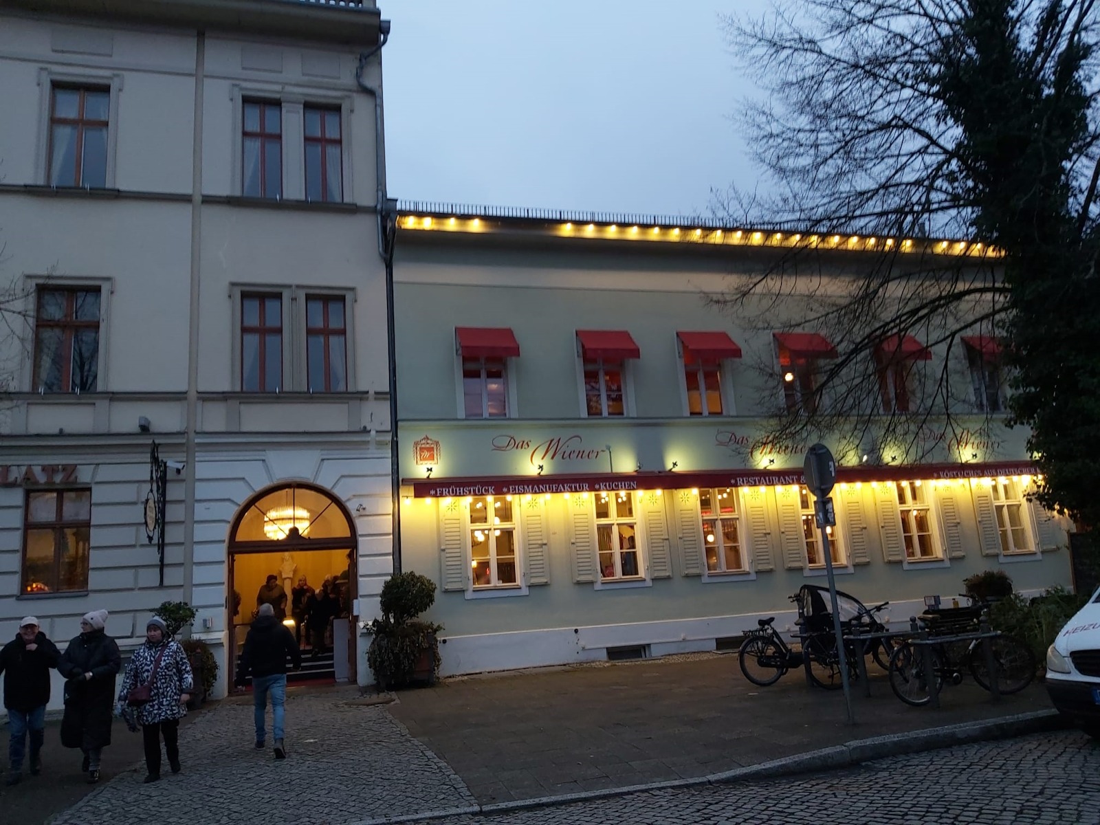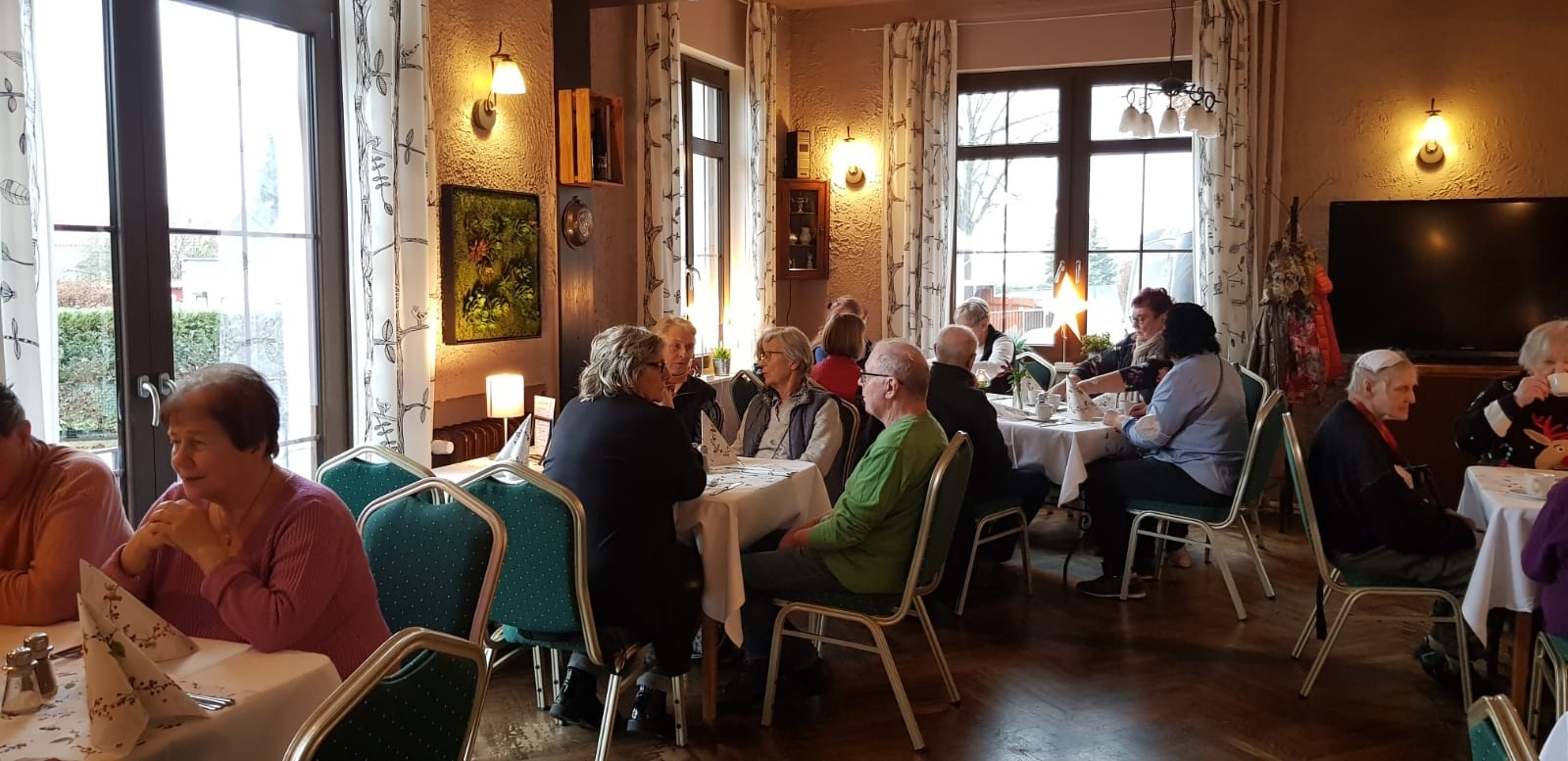 Ein Abstecher führte nach Ahrensdorf bei Ludwigsfelde, wo im „Deutschen Haus“ ein weihnachtliches Mittagessen wartete. Die Reisegruppe wurde im Gasthaus in weihnachtlicher Atmosphäre mit einem Glühwein begrüßt, bevor sie mit Gänsekeule oder Landente mit Rotkraut und Klößen verwöhnt wurde.