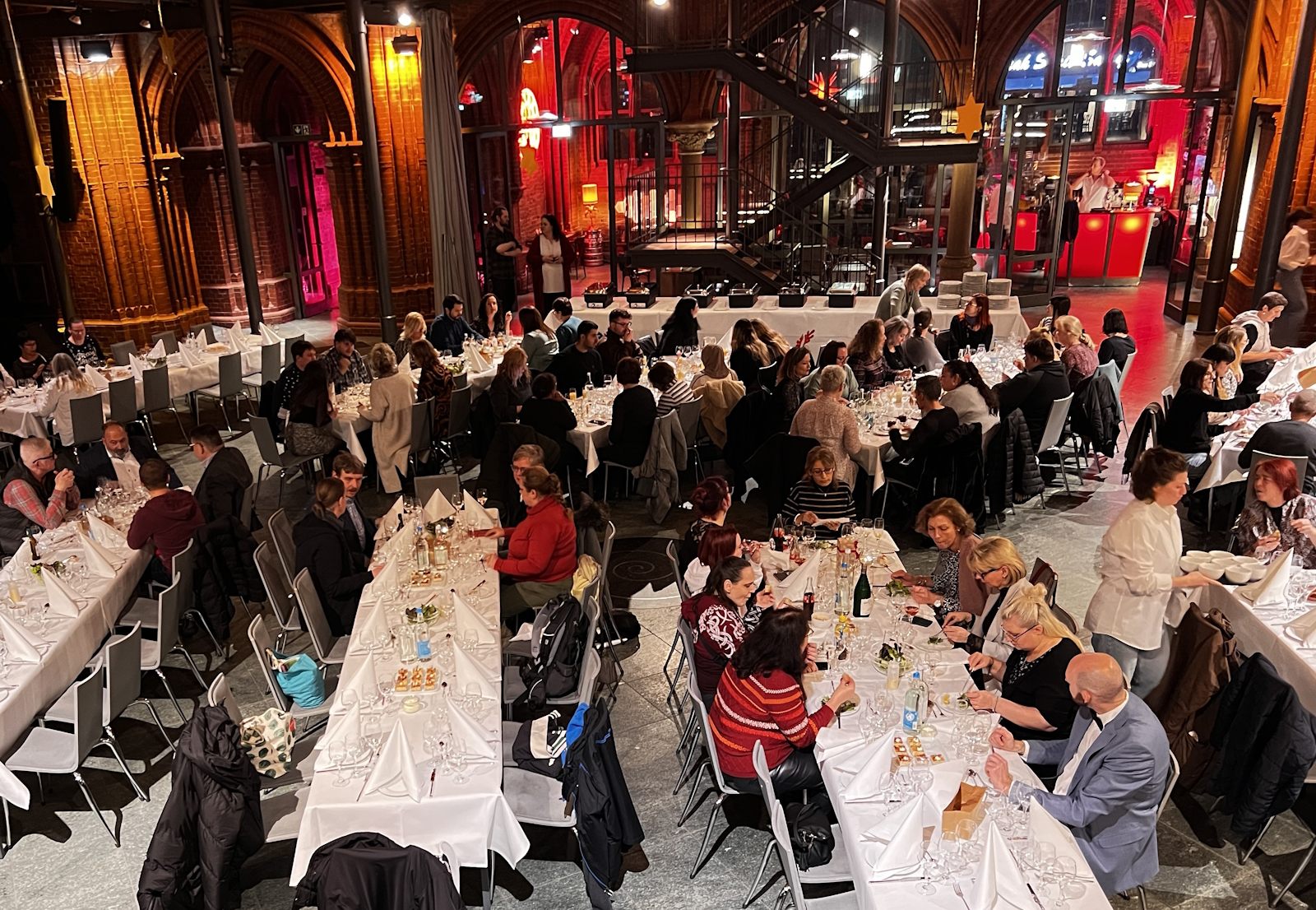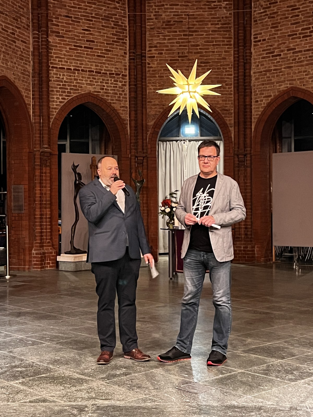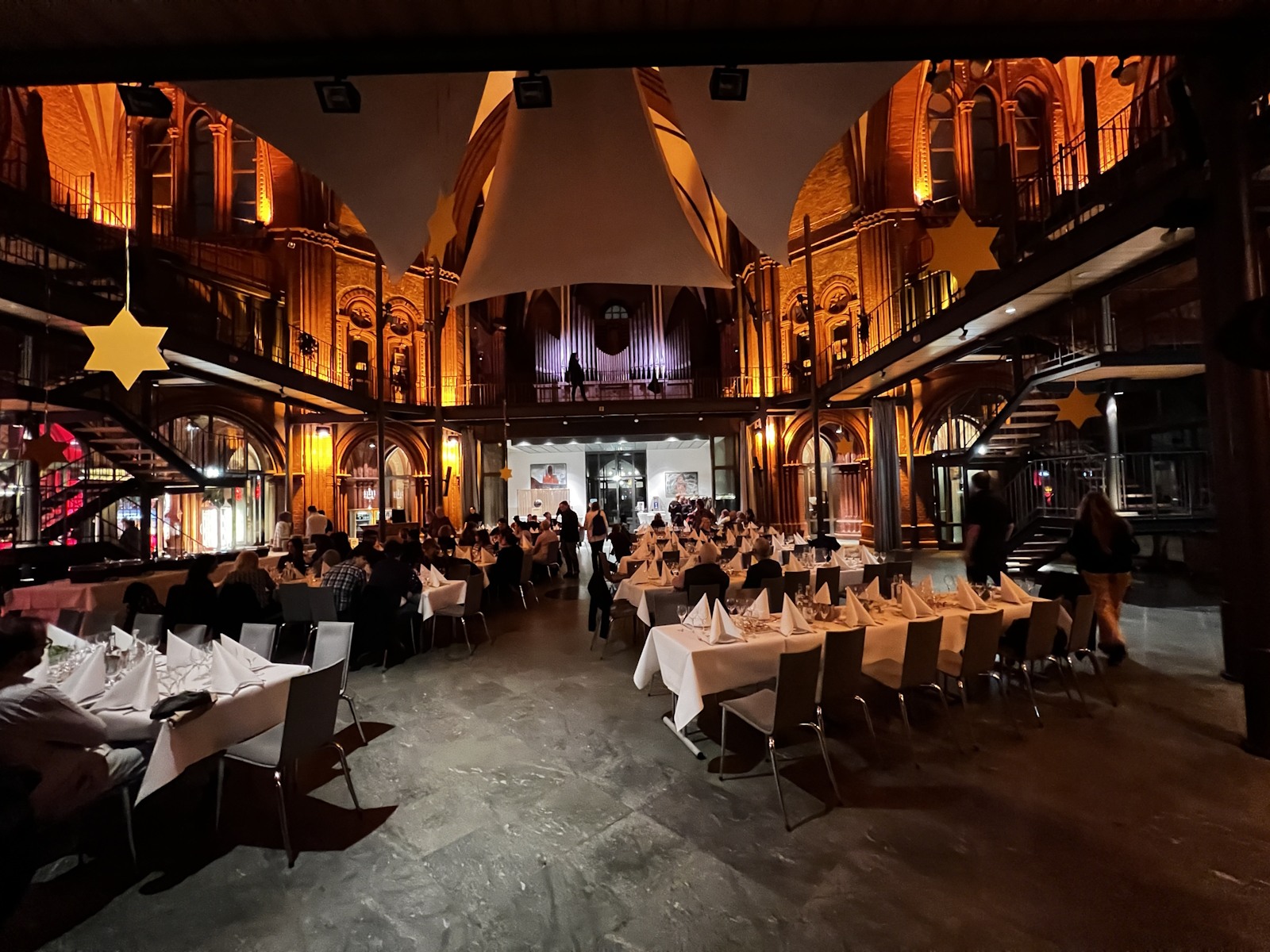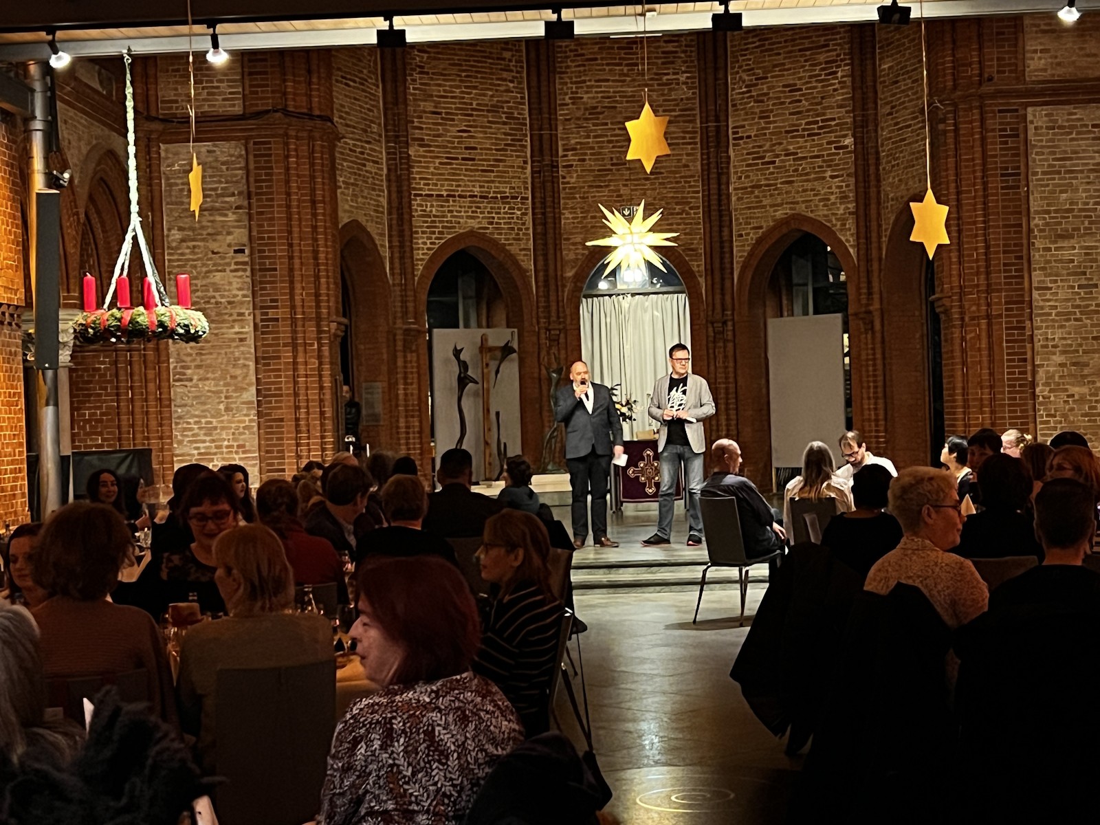 Viele, viele Kolleg*innen aus Kitas, Familienförderung, Kinder- und Jugendeinrichtungen, aus Stadtteiltreffs und Einrichtungen der Migrationsberatung, der Sozial- und Schuldnerberatung, der Wohnungslosenhilfe, aus betreuten Wohngemeinschaften und, und, und waren der Einladung gefolgt und nahmen in dem wunderschön eingerichteten Innenraum der Kirche an festlich gedeckten Tischen Platz.