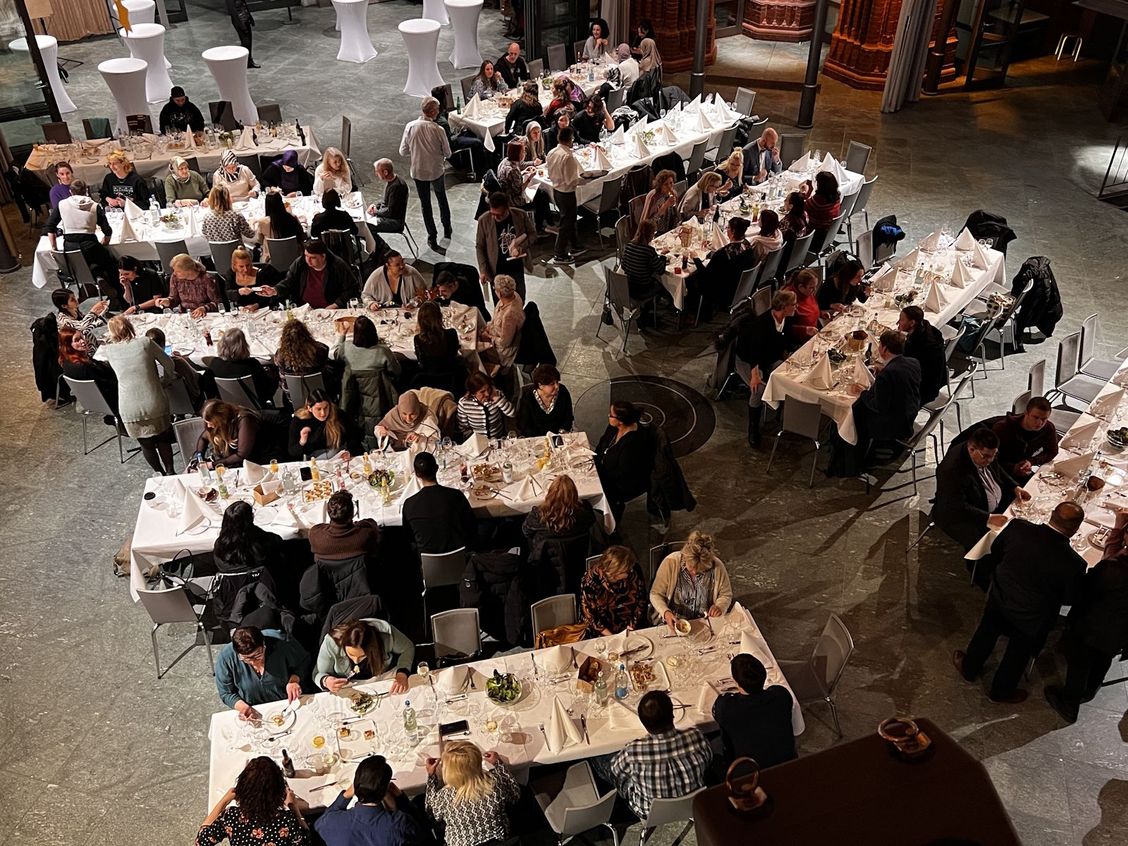 Dann startete die Party mit einem festlichen Essen während der DJ schon mit weihnachtlicher Musik unterhielt. War es das lange und gute Essen, waren es der angeregte Smalltalk unter Kollegen oder auch ein bisschen die Müdigkeit am Freitagabend nach einer anstrengenden Arbeitswoche, es brauchte an diesem Abend einige Zeit, bis die ersten Gäste der Einladung des DJ zum Tanz folgten.
