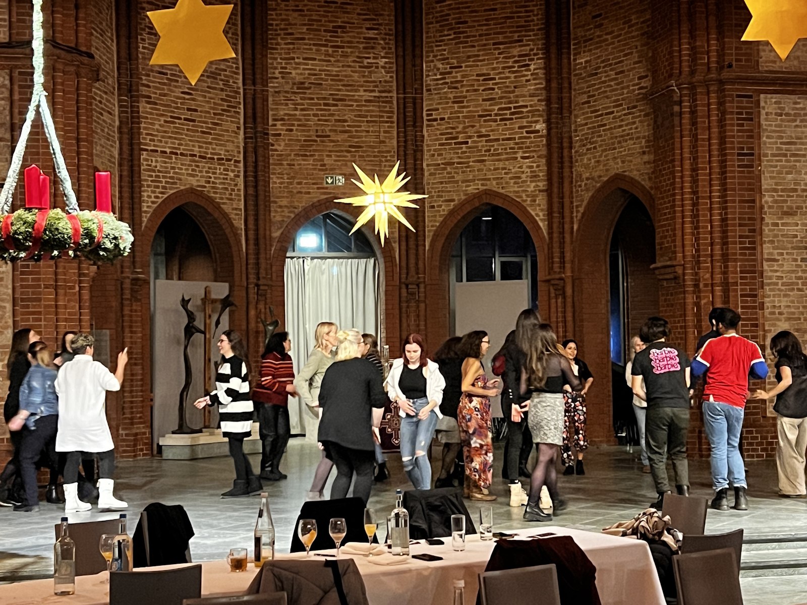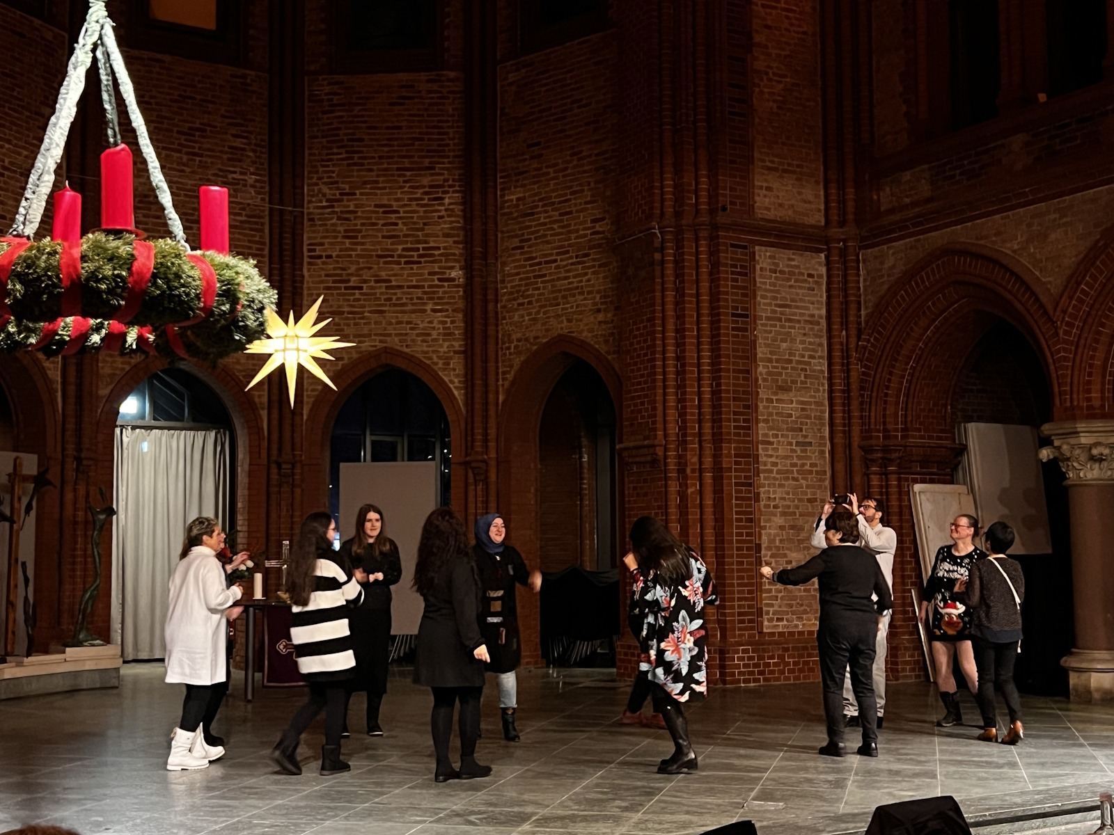 Am 15. Dezember hatten Vorstand und Geschäftsführung die Mitarbeiter*innen der AWO Spree-Wuhle und der AWO-City gGmbH zur Jahresabschlussfeier in die Räumlichkeiten der Heilig-Kreuz-Kirche in Kreuzberg eingeladen. Schon das Sommerfest hatte im Biergarten an der Kirche stattgefunden.