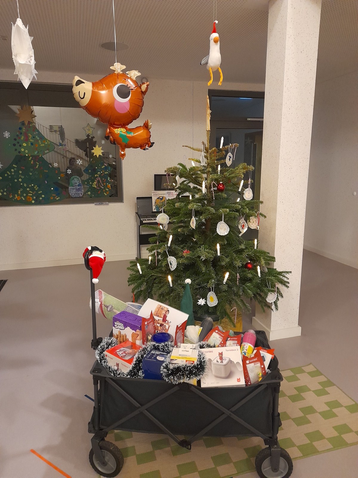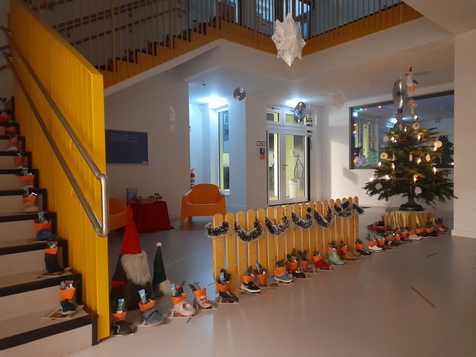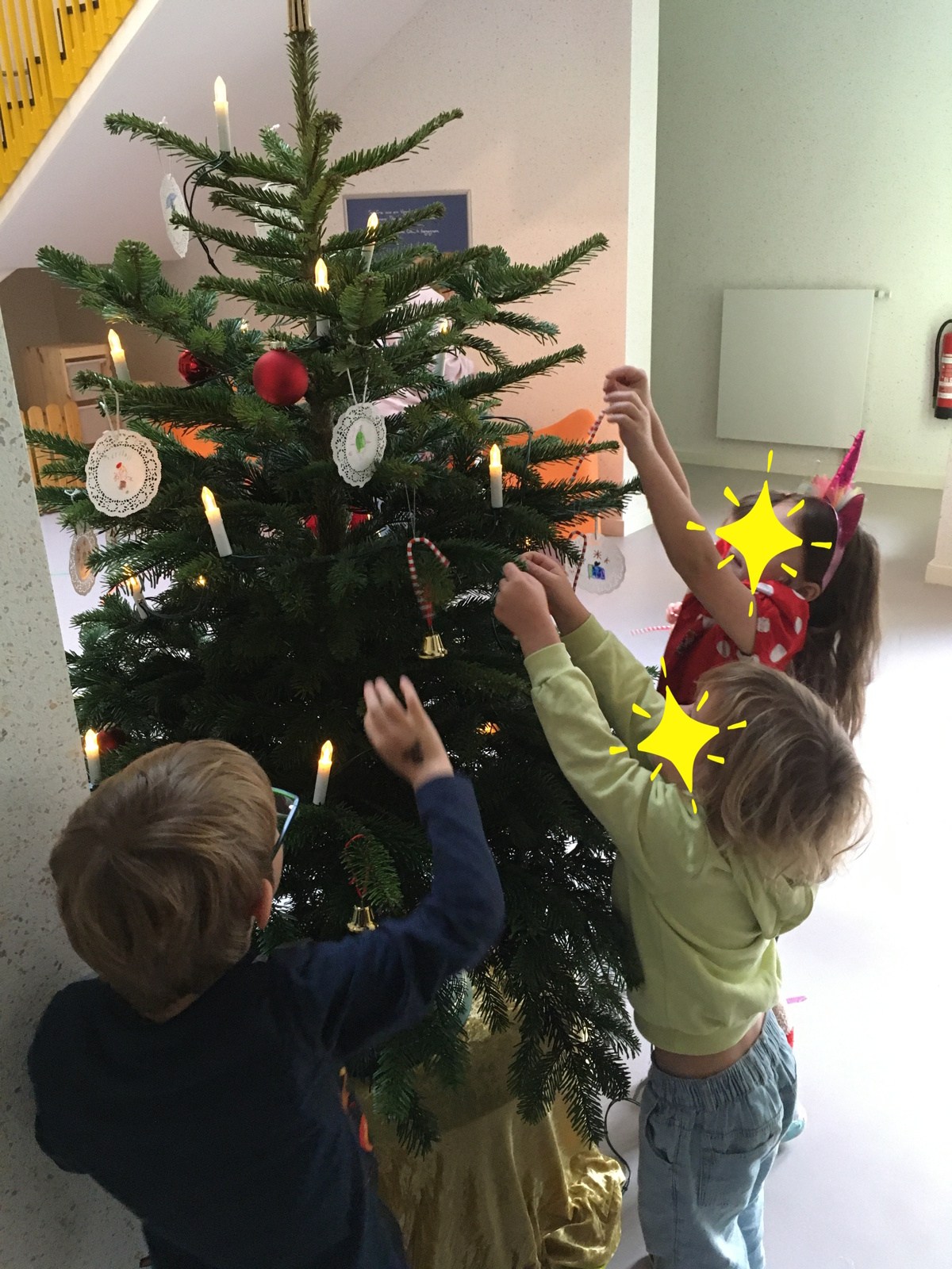 Zum Auftakt holten die Kinder gemeinsam den Weihnachtsbaum, der anschließend mit selbstgebasteltem Schmuck dekoriert wurde. Weihnachtssingen, Bastelaktionen und das Verzieren von Kekshäusern gehörten ebenso dazu wie der Duft frisch gebackener Waffeln. Ein Geschenkewagen des Fördervereins und eine Nikolausüberraschung sorgten für große Freude, während Theaterbesuche, Ausflüge in den Winterwald und die ersten Schneeflocken die Adventszeit noch besonderer machten.